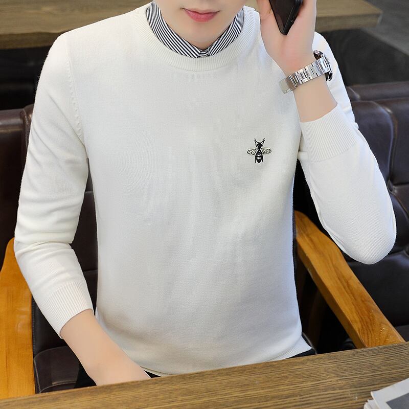 Fake two-piece long-sleeved t-shirt men's spring and autumn thin section small bee embroidery autumn top fake collar knitted bottoming shirt ロング 刺繍 スプリング 春物 オータム 秋物 Tシャツ doushi62732621459
