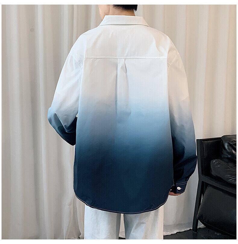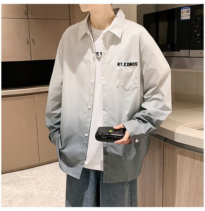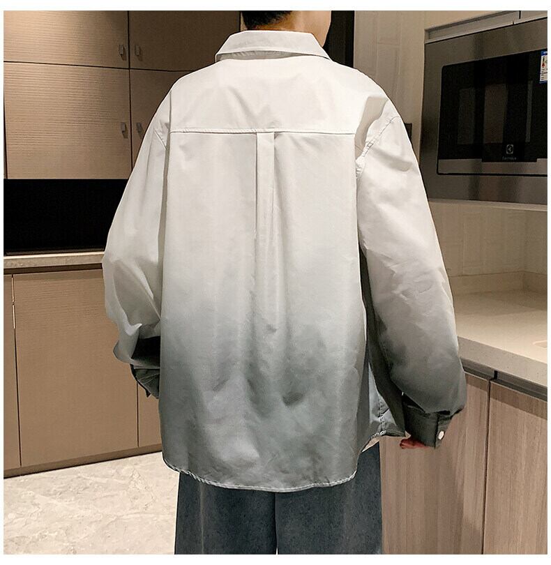 Gradient shirt men's long-sleeved spring and autumn tide brand lapel non-iron loose casual top clothes men's shirt jacket ロング カジュアル スプリング 春物 オータム 秋物 doushi86286440636