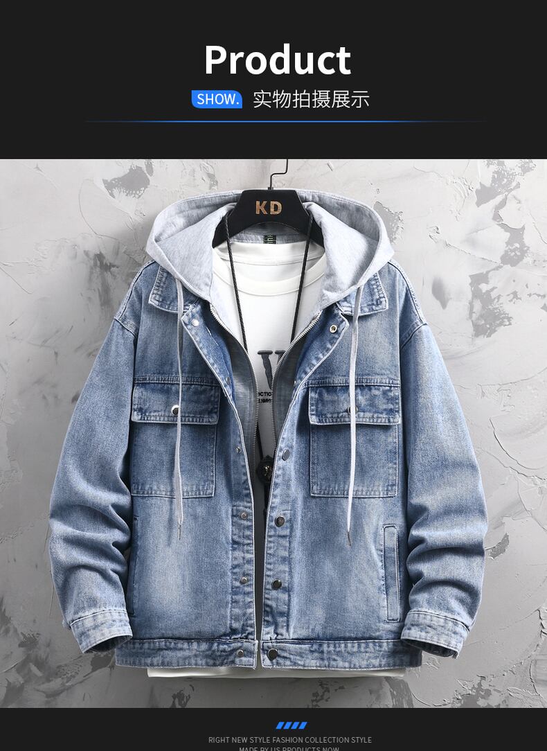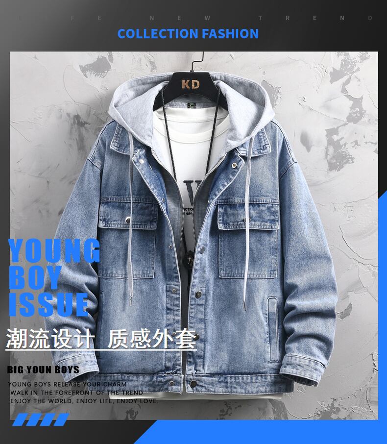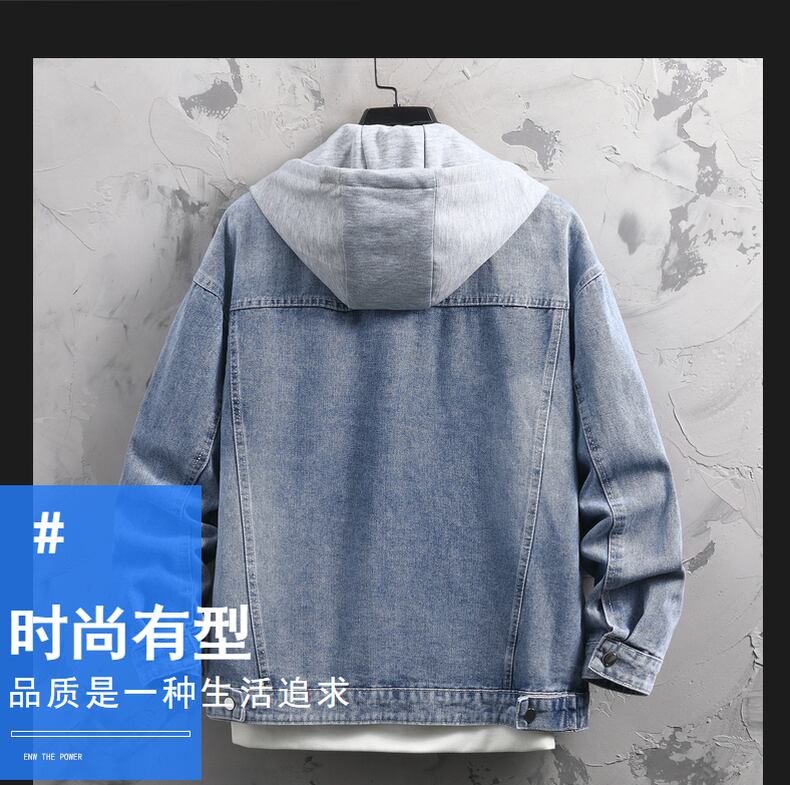 2022 spring and autumn new youth denim casual hooded jacket top men's fake two-piece jacket handsome and trendy カジュアル スプリング 春物 オータム 秋物 doushi16854309602