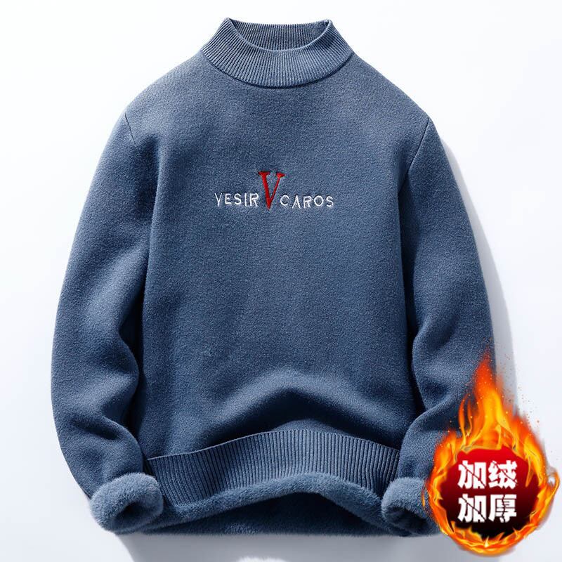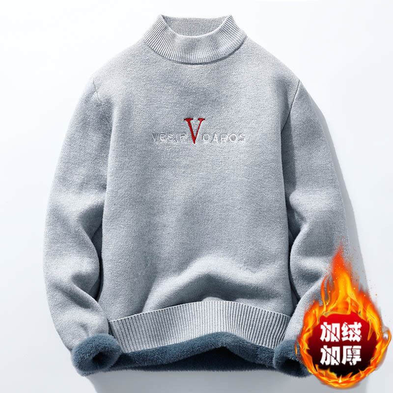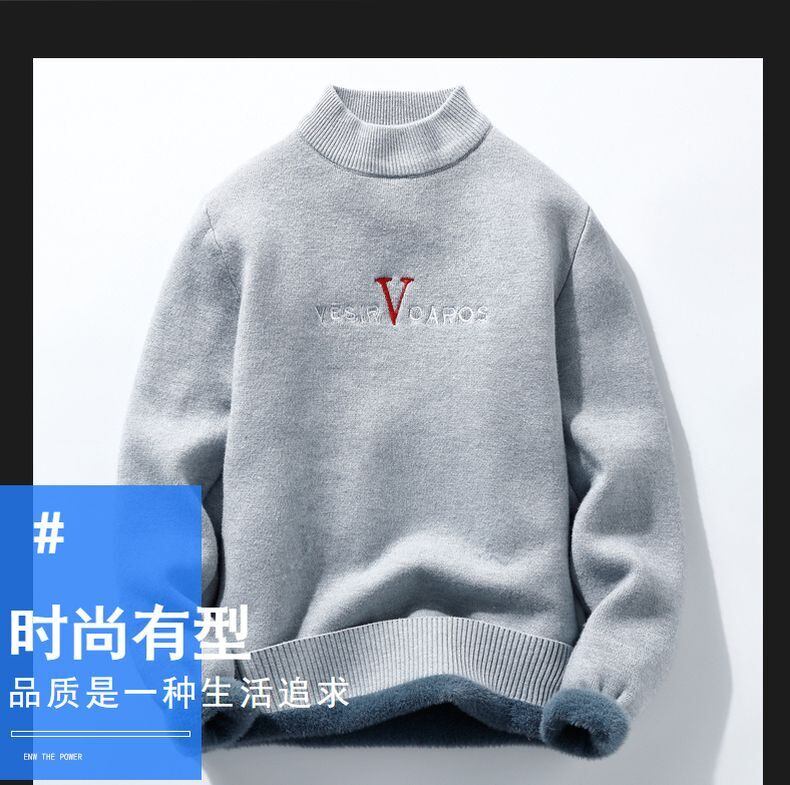 Half turtleneck sweater men's 2022 spring, autumn and winter warm middle-collar youth handsome plus velvet thickened imitation mink knitted sweater スプリング 春物 オータム 秋物 ウィンター 冬物 doushi35125879645