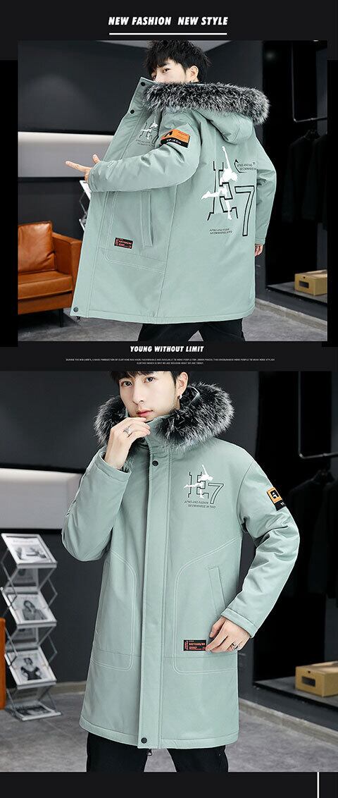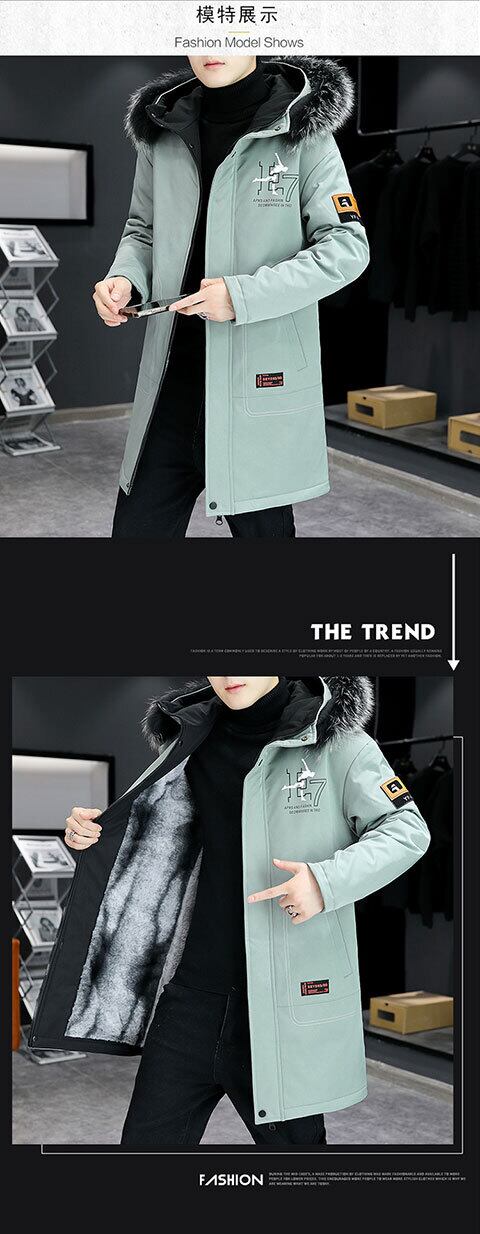 2022 winter clothing mid-length cotton coat men's cotton jacket men's plus velvet thick coat fur collar fur Parker cotton coat コットン ウィンター 冬物 doushi88555755953