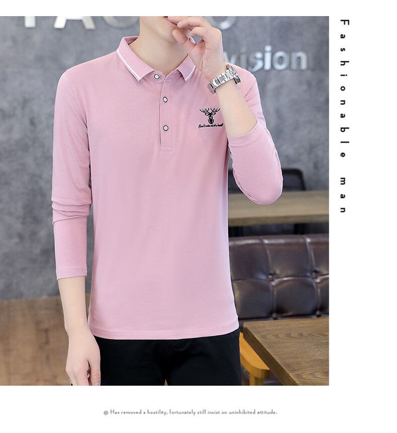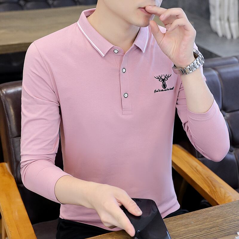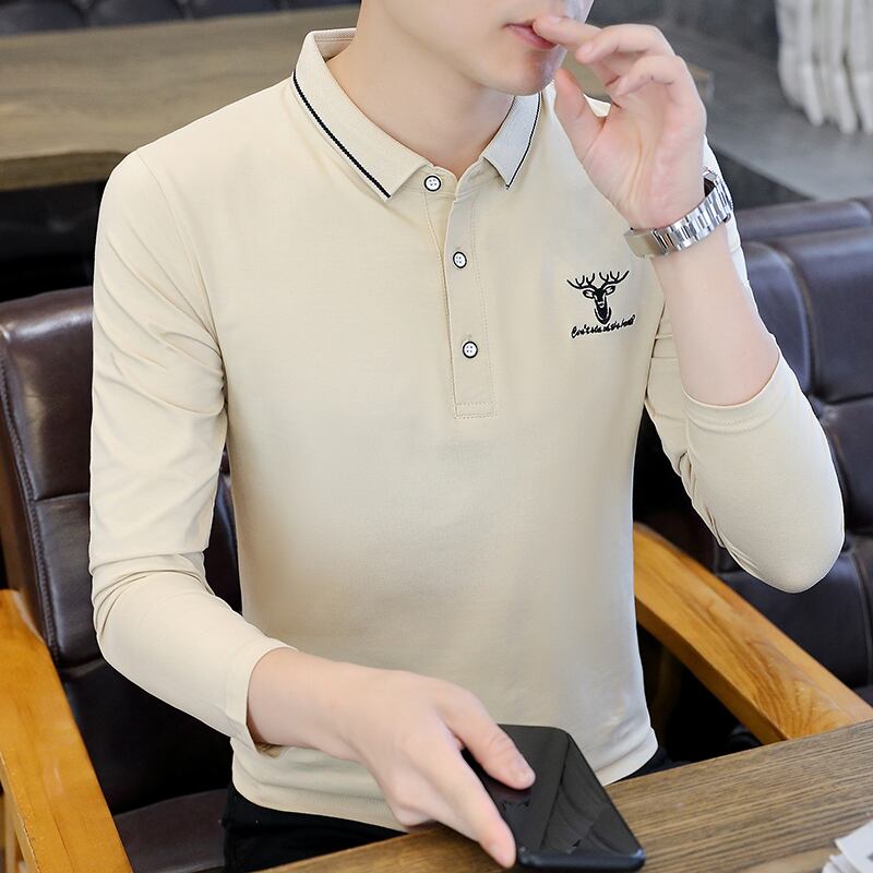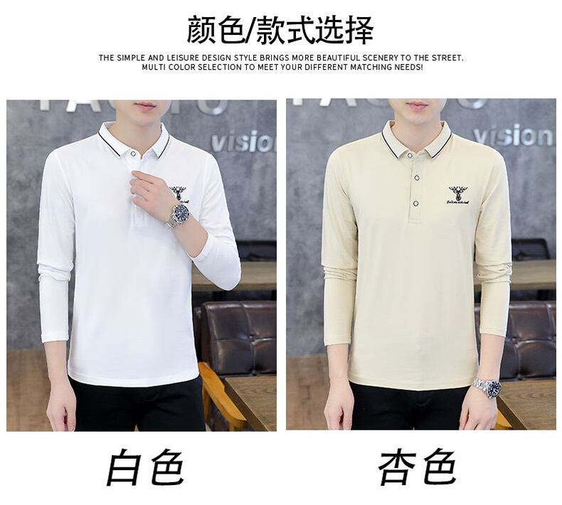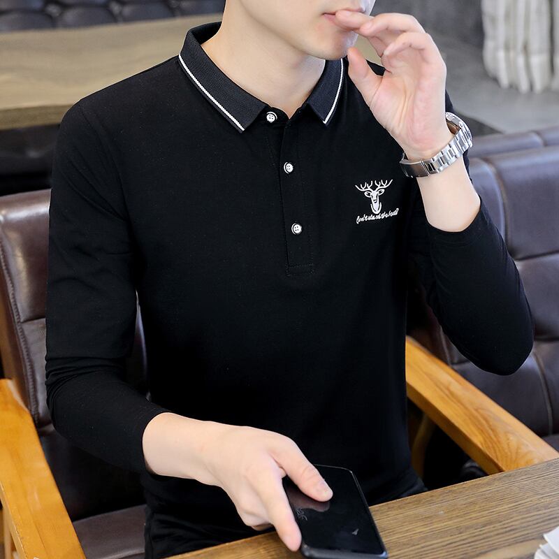 Autumn lapel long-sleeved t-shirt men's cotton bottoming shirt t-shirt top clothes with collar polo shirt trend men's clothing ロング コットン オータム 秋物 Tシャツ doushi94383363602