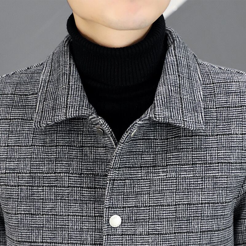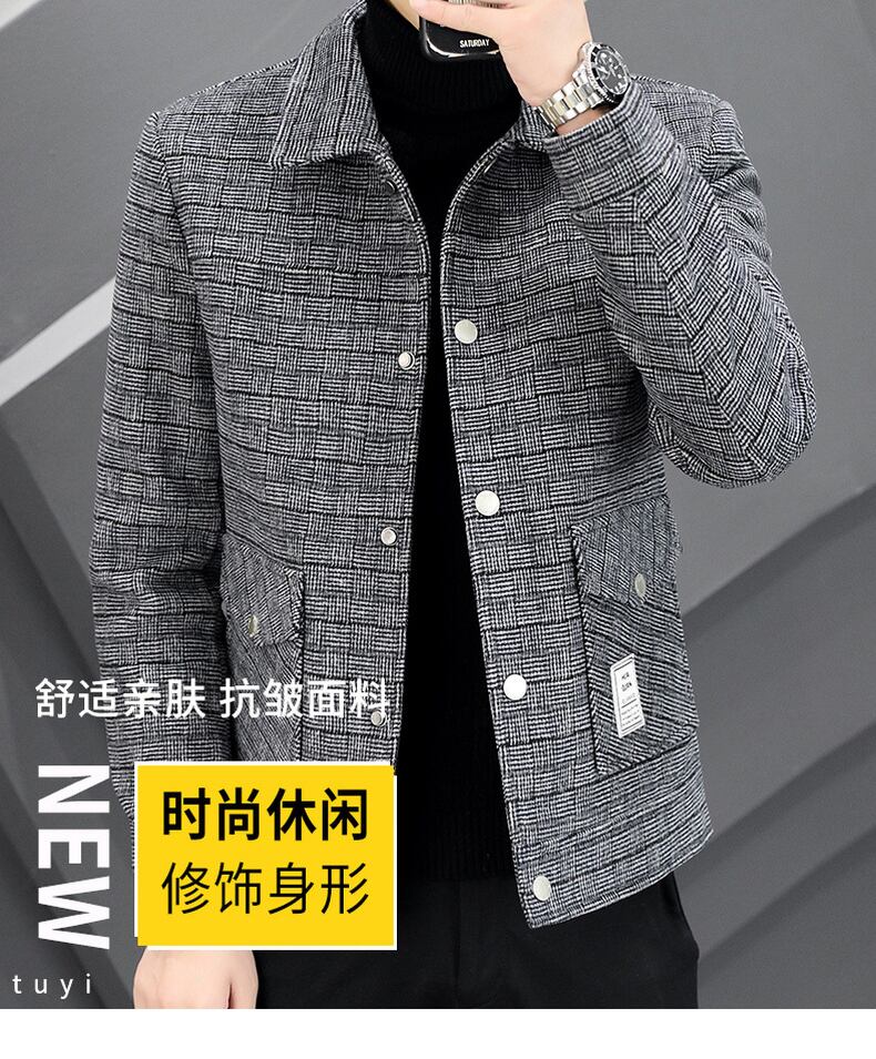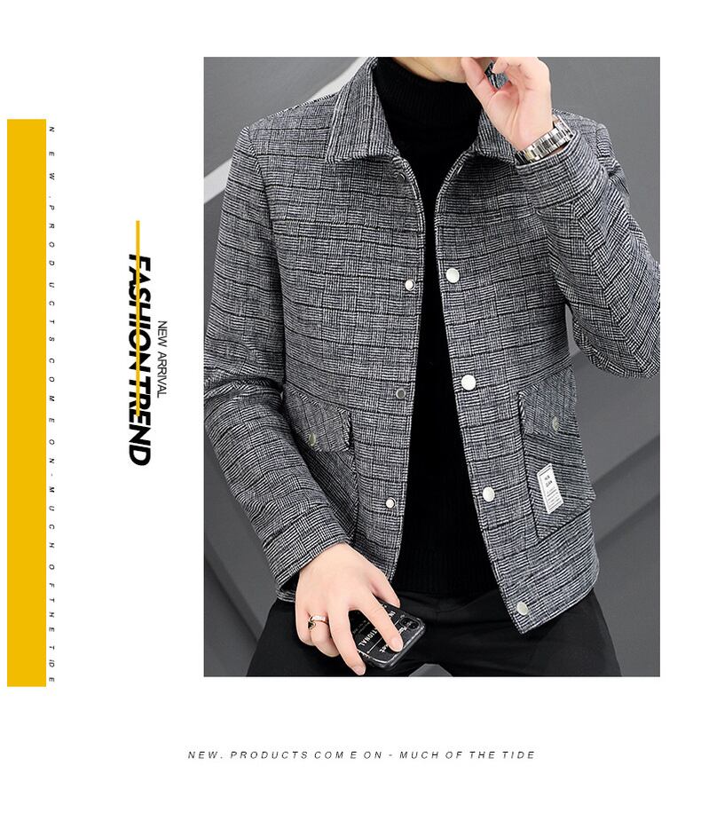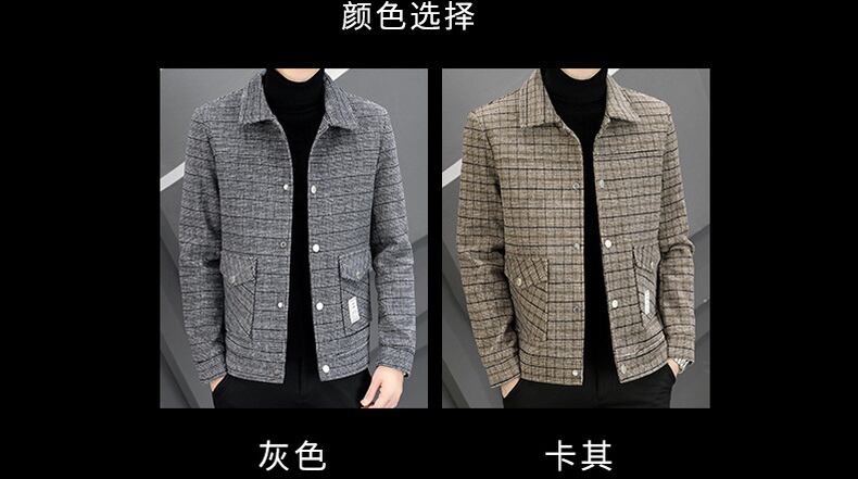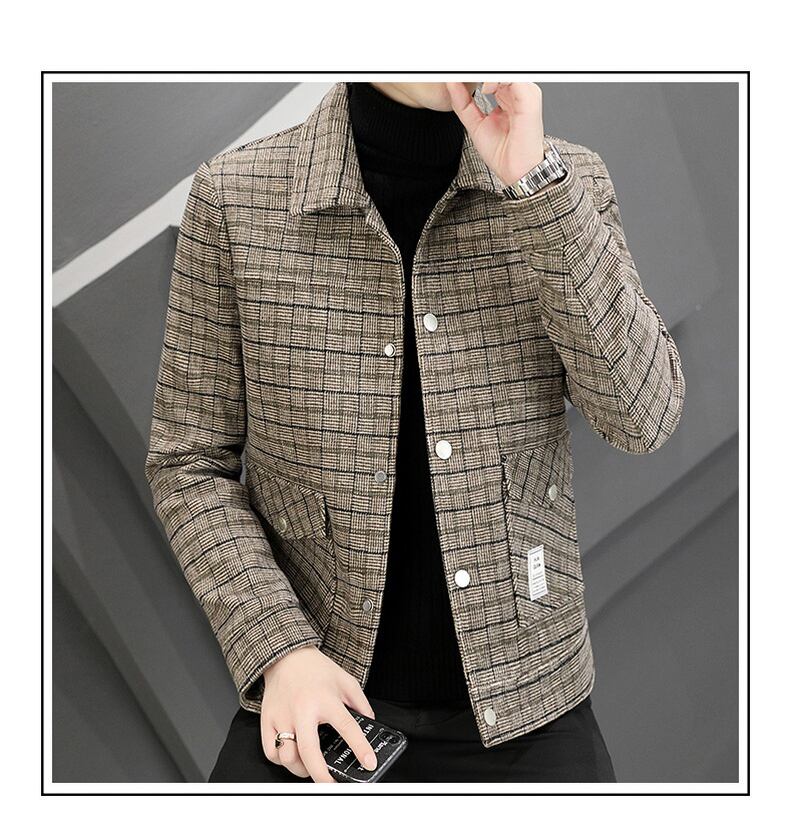 Autumn men's lapel small plaid jacket young and middle-aged light business trend handsome short woolen coat casual coat ショート カジュアル オータム 秋物 doushi86562458059
