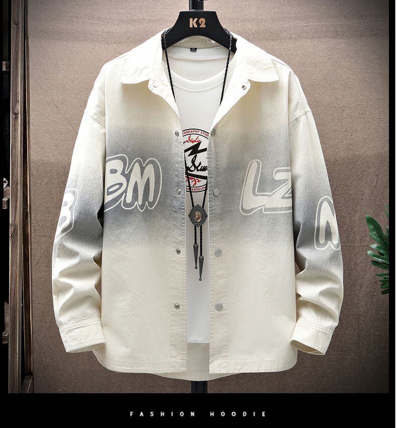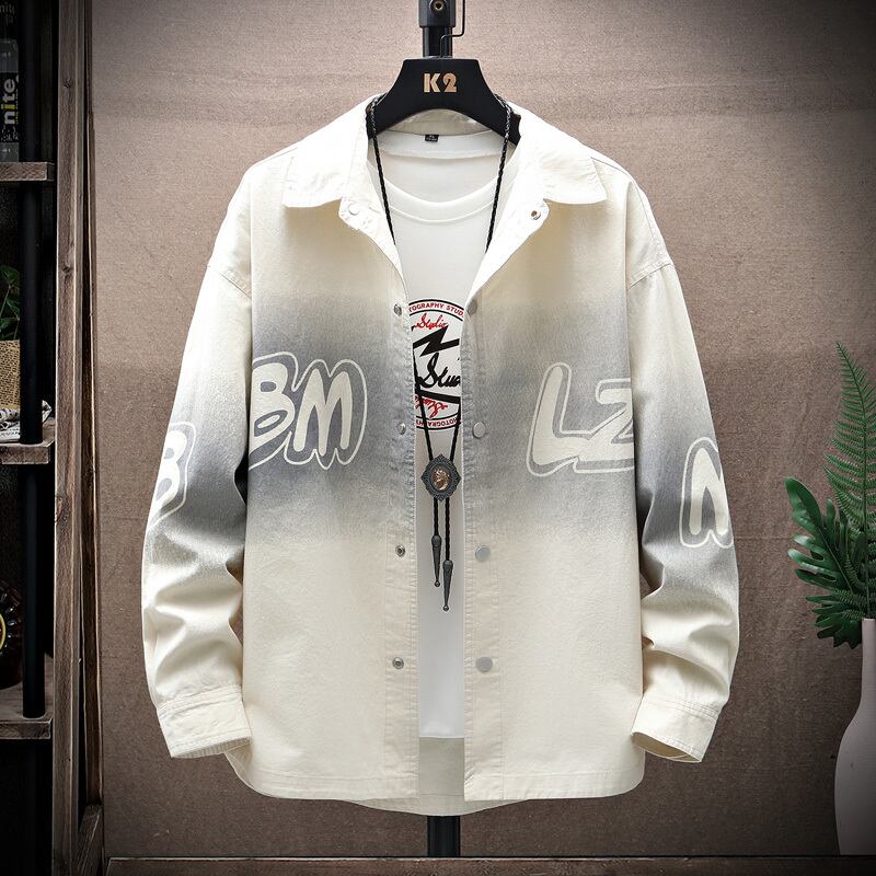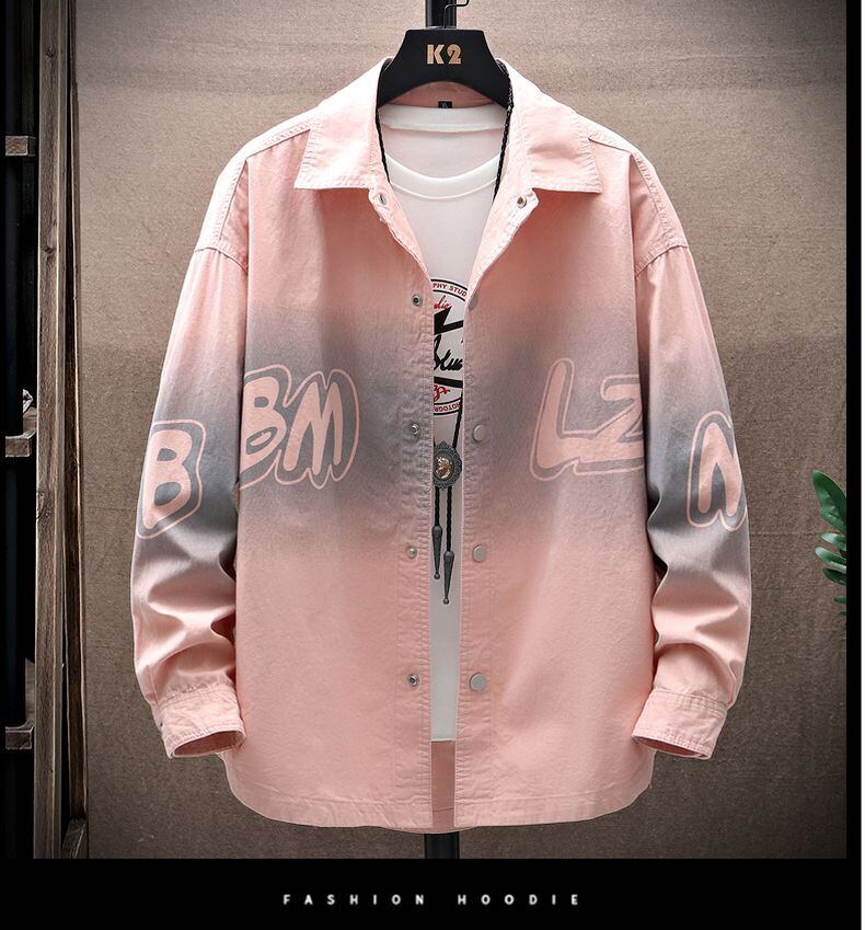 Spring casual shirt men's ins tide long-sleeved pink outerwear shirt youth high students gradient trend coat ロング ピンク カジュアル スプリング 春物 doushi1915862965