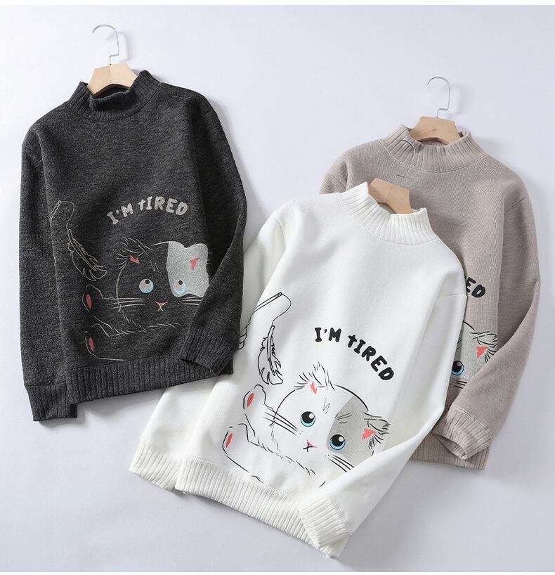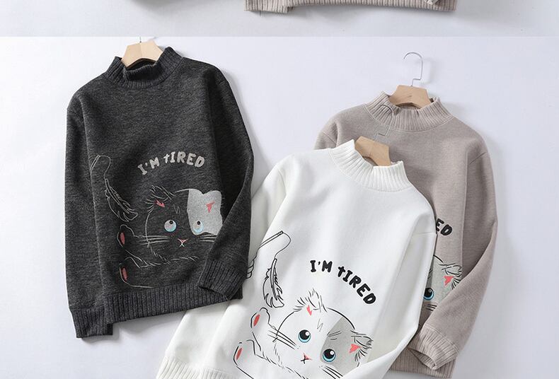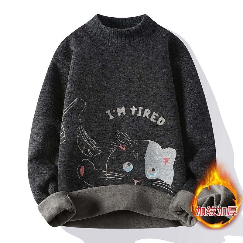 ese cat half turtleneck sweater men's tide brand plus velvet thickening autumn and winter loose bottoming sweater tide オータム 秋物 ウィンター 冬物 doushi72571671102