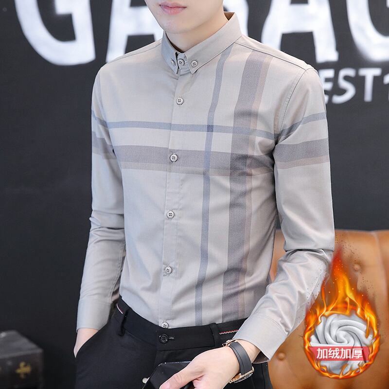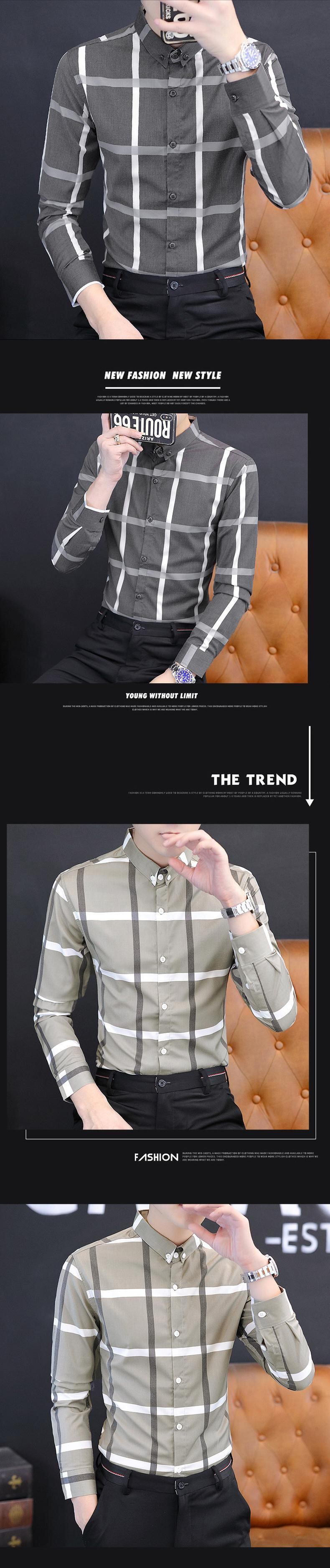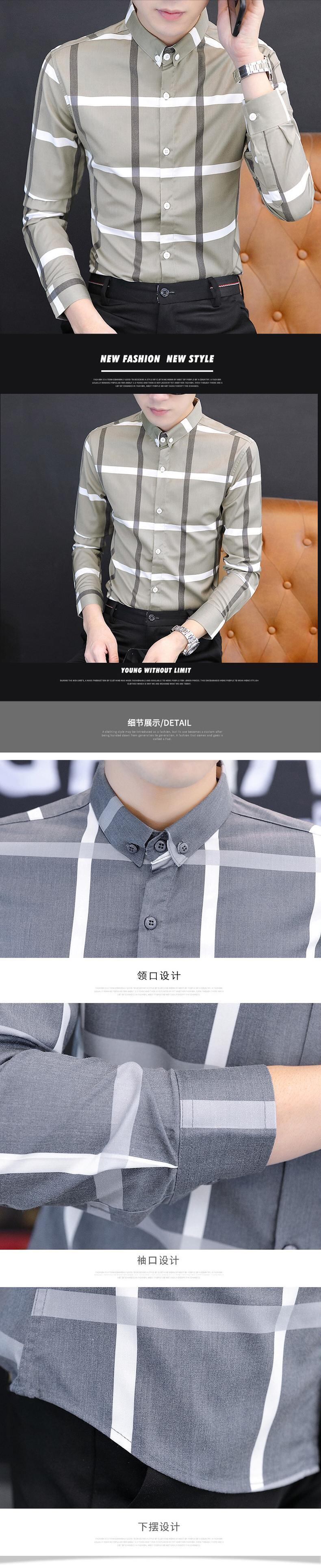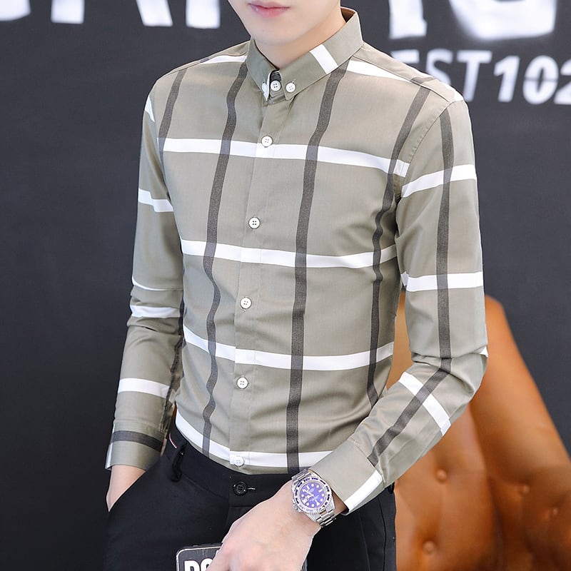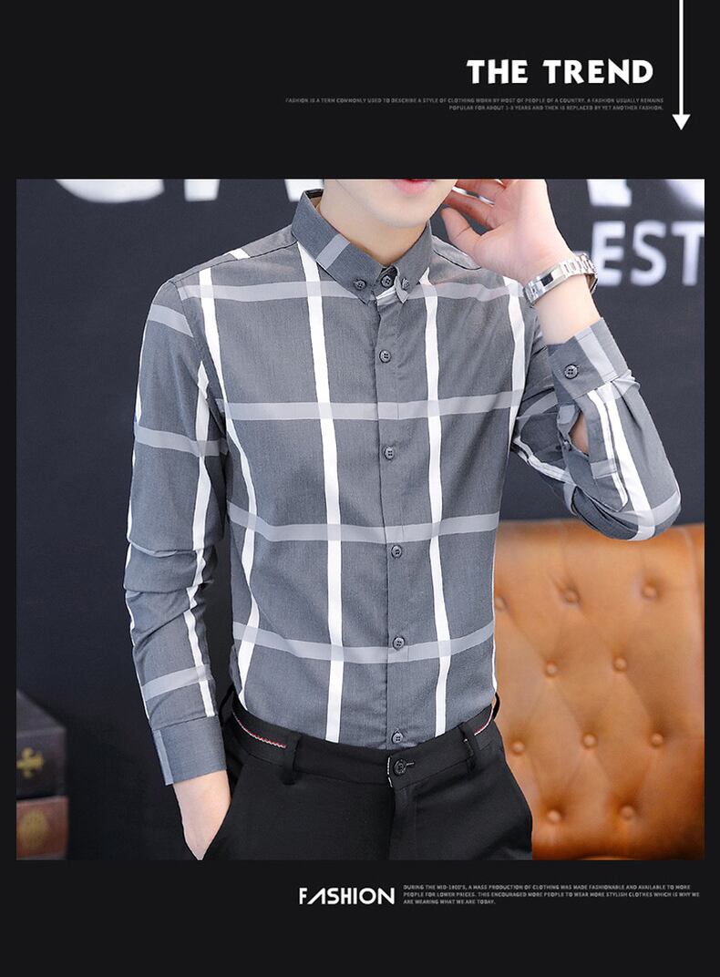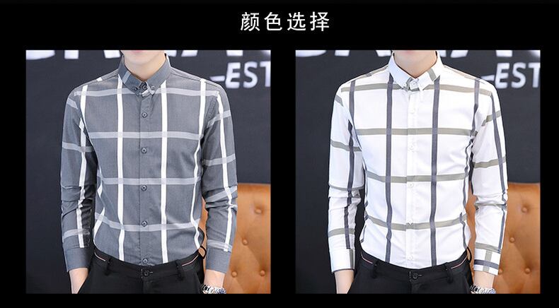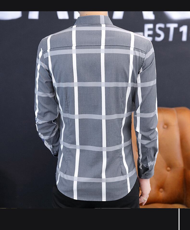 Plaid shirt men's long-sleeved spring and autumn slim business casual shirt coat trend handsome thin inch shirt ロング カジュアル スプリング 春物 オータム 秋物 スリム doushi77502129982