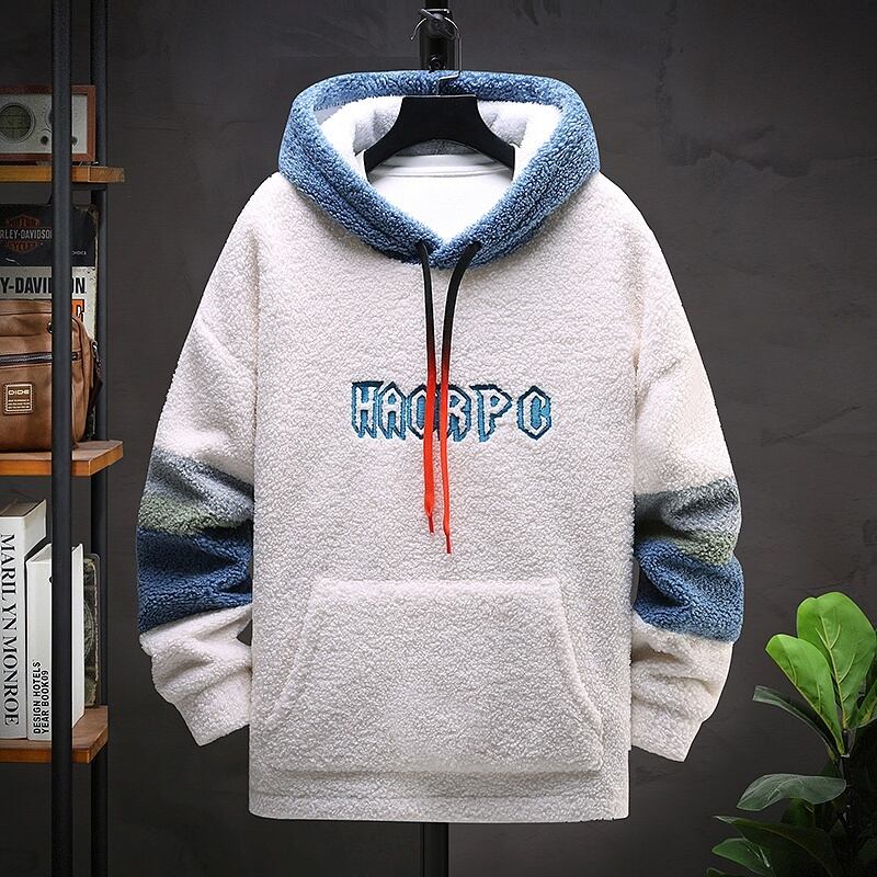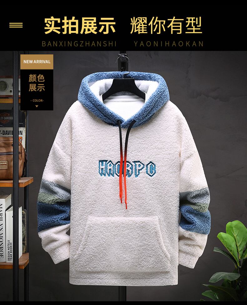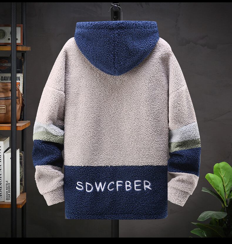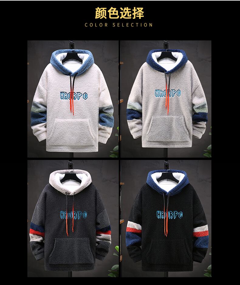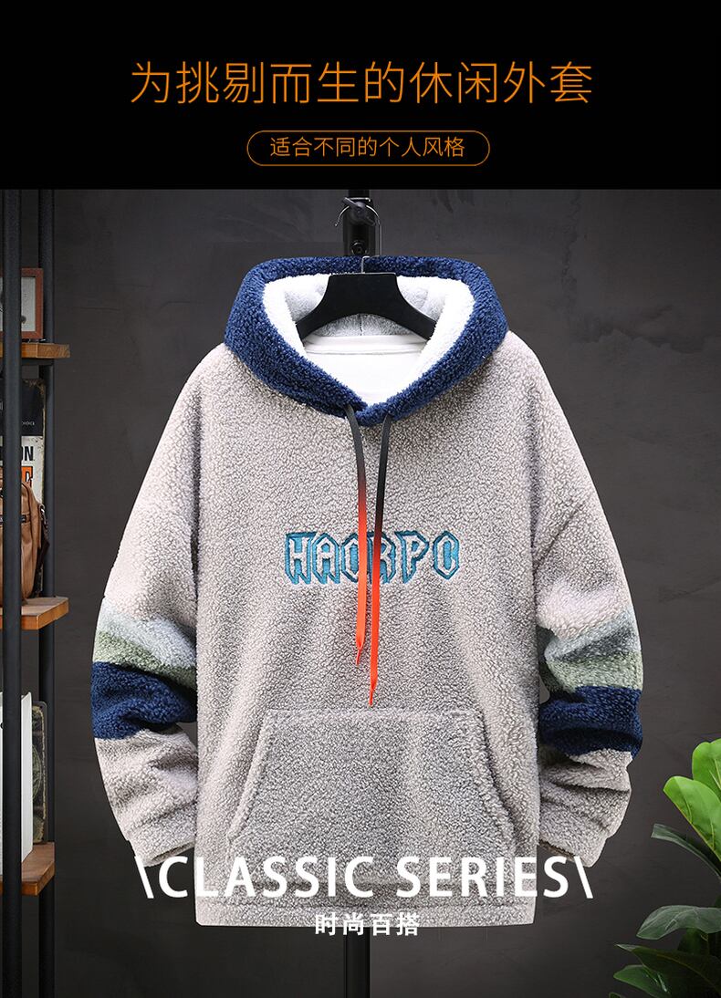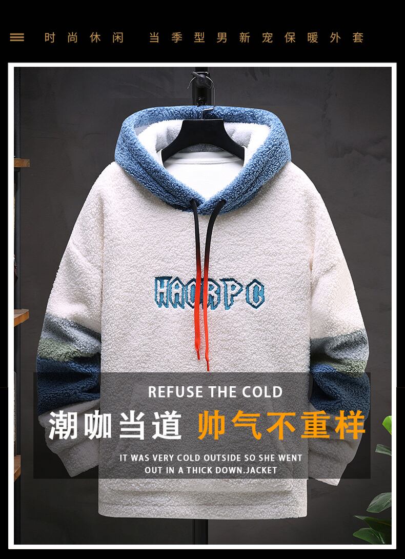 Lamb velvet plus velvet thickened hooded sweater men's 2022 new autumn and winter loose trend top cardigan jacket カーディガン オータム 秋物 ウィンター 冬物 doushi35058971270