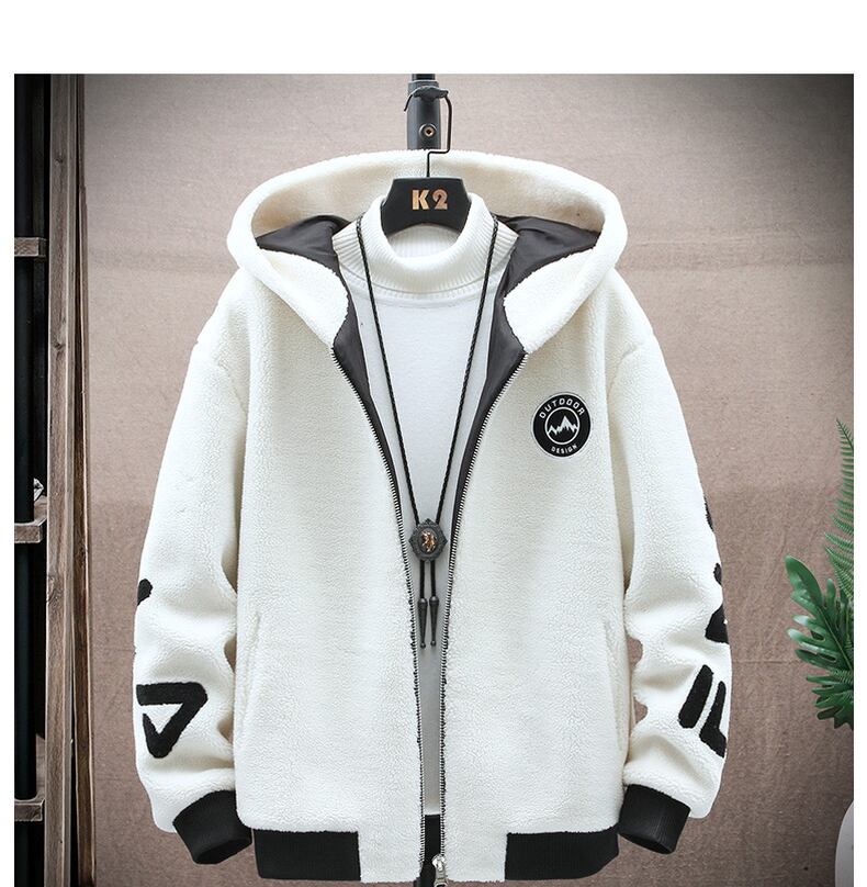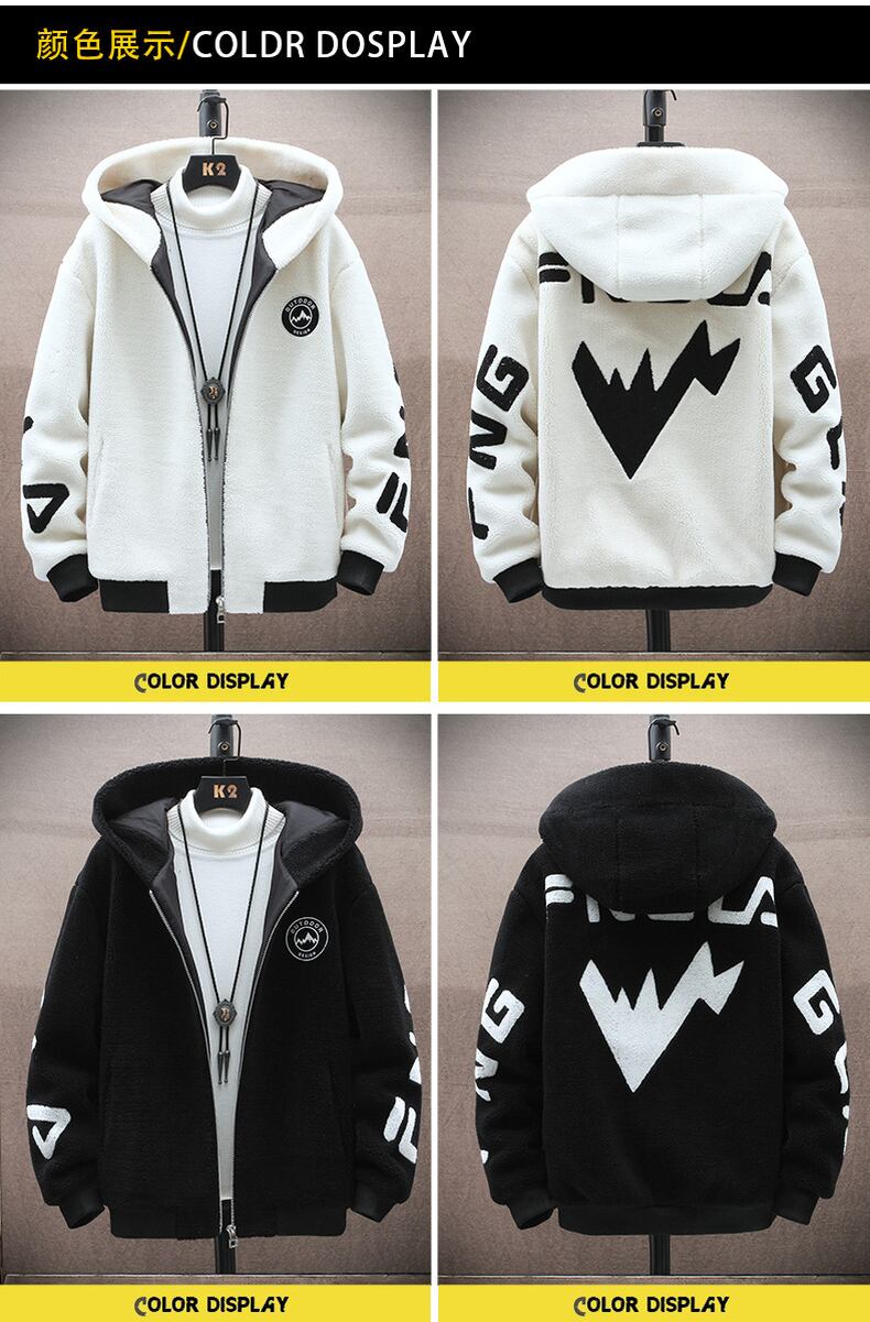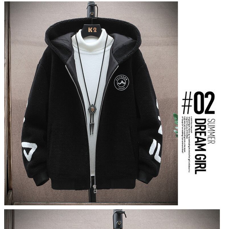 Plus velvet thickening men's winter 2022 new high students trend hooded fur students handsome grain velvet cotton clothes tide コットン ウィンター 冬物 doushi3968706160