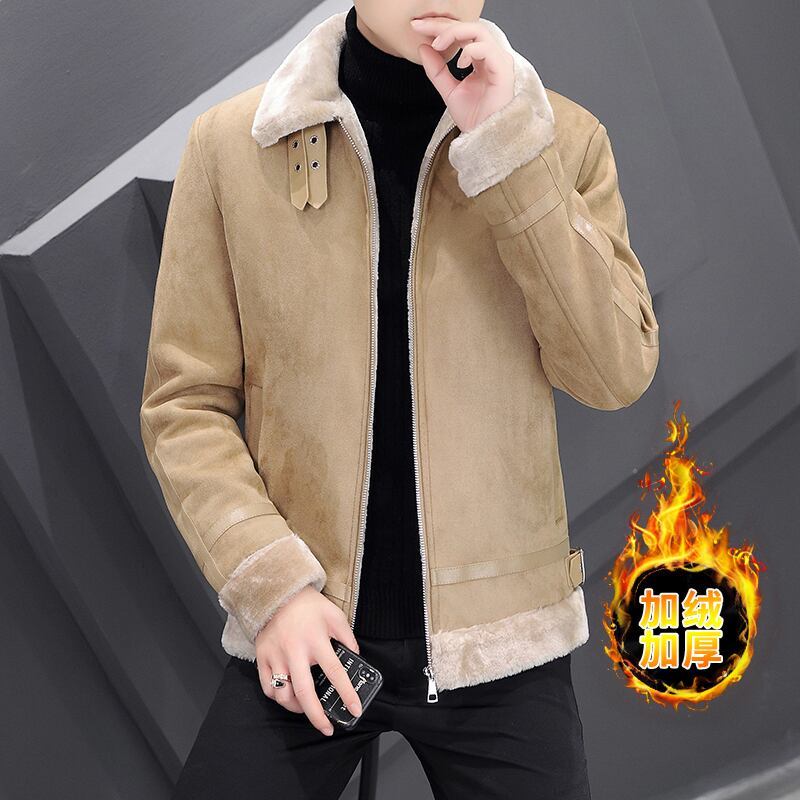 Jacket men's padded autumn and winter fleece thick winter cotton padded clothing trend deerskin velvet jacket fur all-in-one padded jacket コットン オータム 秋物 ウィンター 冬物 doushi18735020782