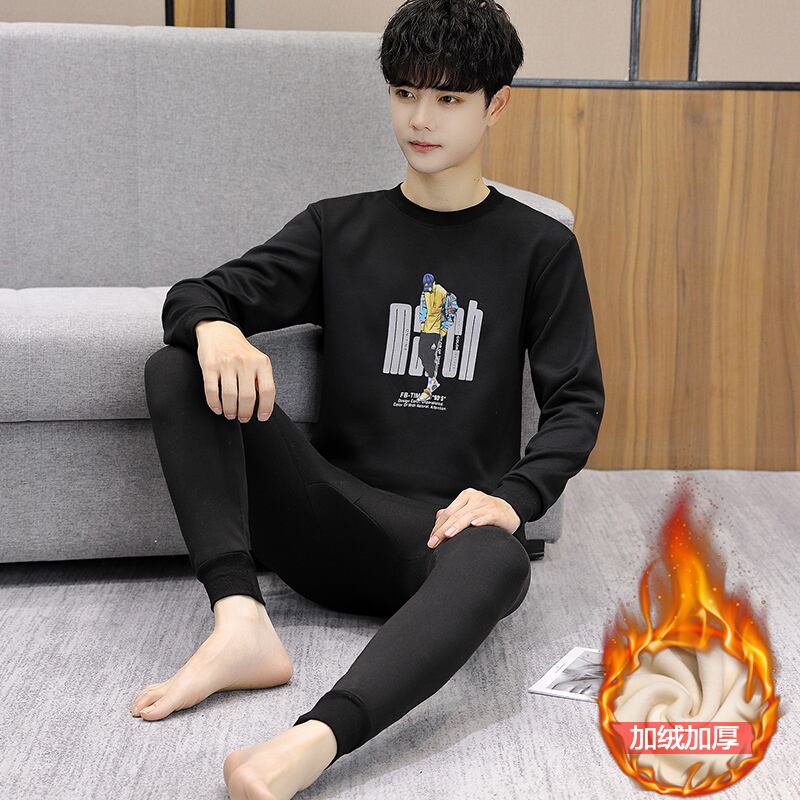 13-year-old boy thermal underwear plus velvet thickening 12 junior high students 14 big children 15 cotton autumn clothes and long pants a set ロング コットン オータム 秋物 doushi29217467474
