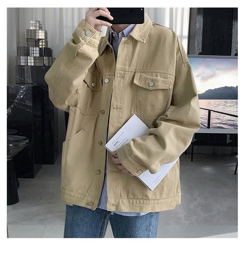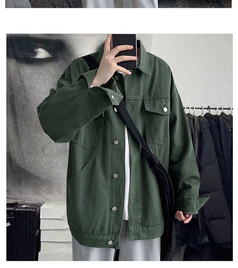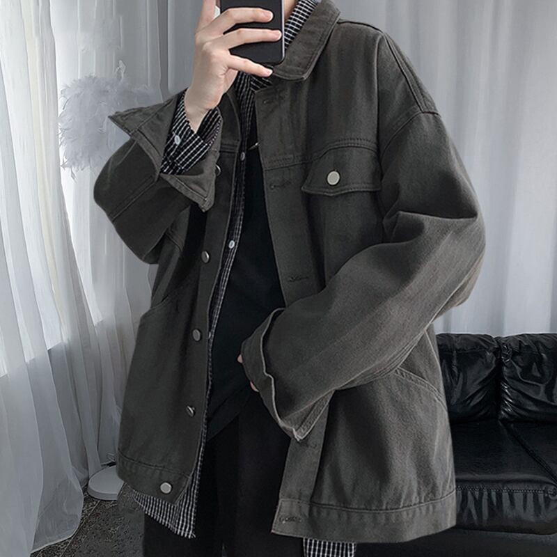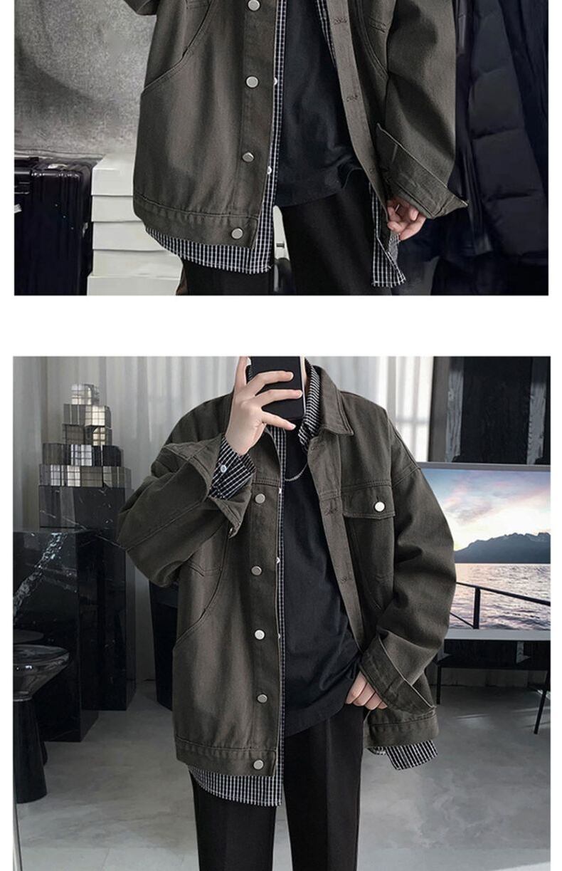 Denim jacket men's spring and autumn trend loose casual black top shirt men's lapel shirt jacket ブラック カジュアル スプリング 春物 オータム 秋物 doushi6846840306