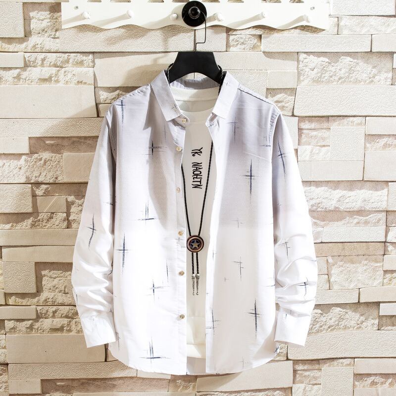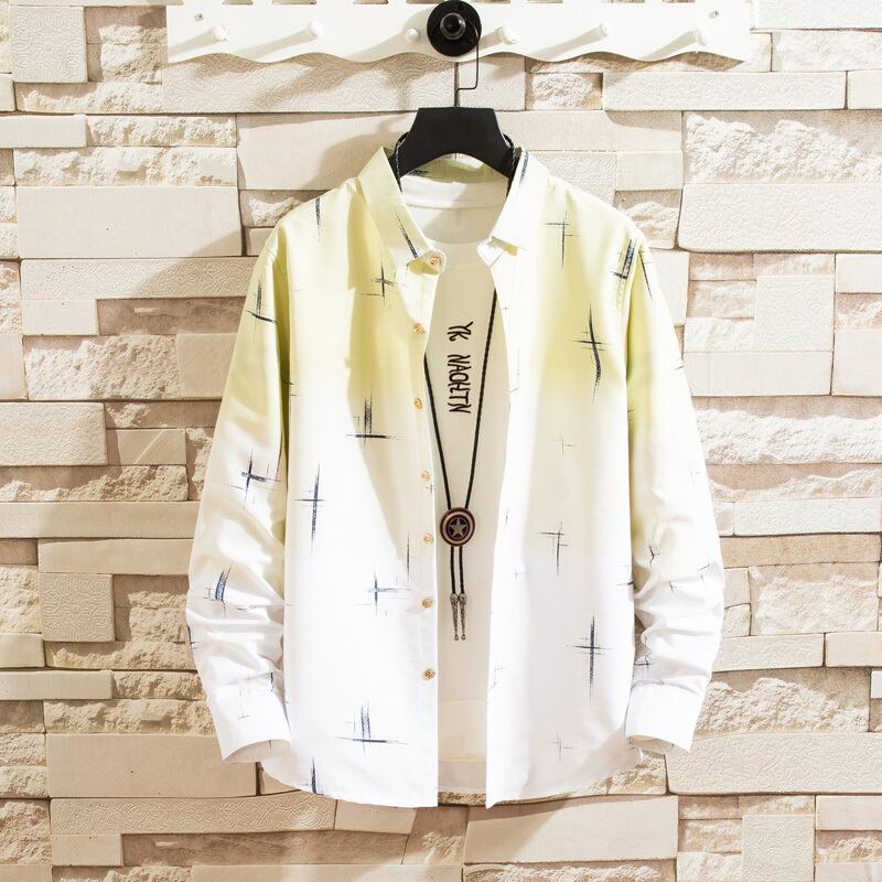 2022 spring and autumn gradient shirt men's long-sleeved version slim student trendy handsome shirt men's thin coat ロング スプリング 春物 オータム 秋物 スリム doushi44784140628