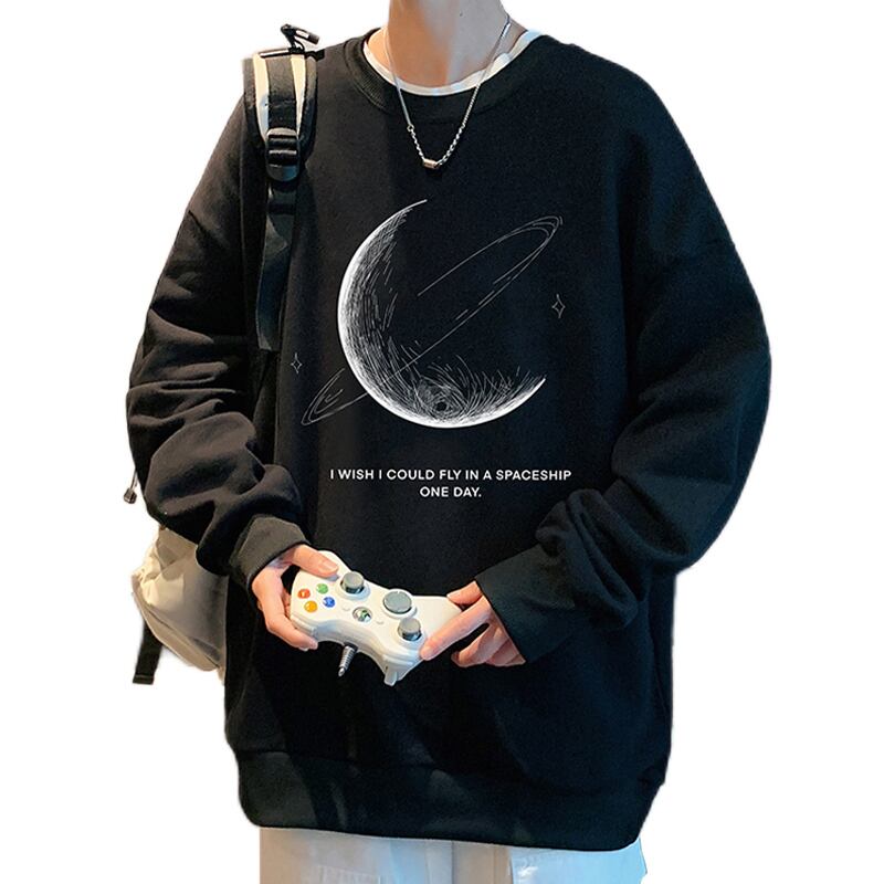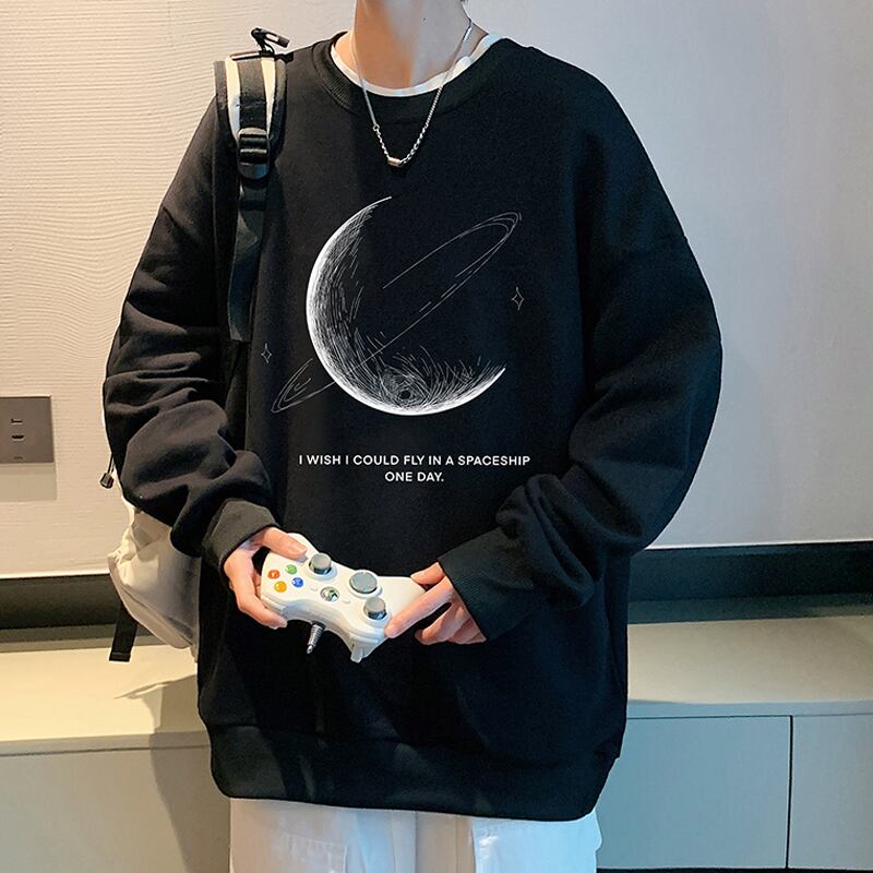 Long-sleeved T-shirt men's spring and autumn round neck trend black top shirt bottoming shirt loose printing pullover men's sweater ロング ブラック スプリング 春物 オータム 秋物 Oネック Tシャツ doushi89192720621