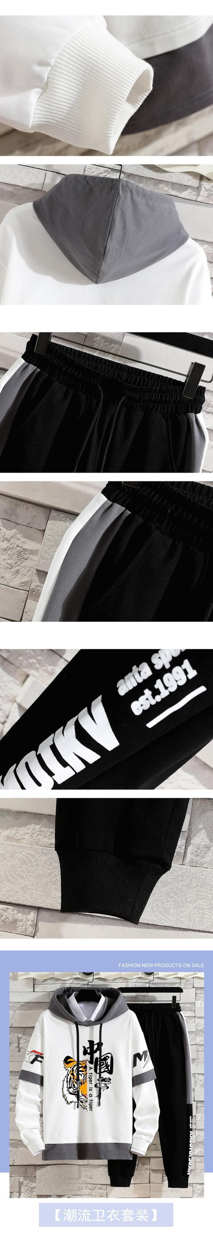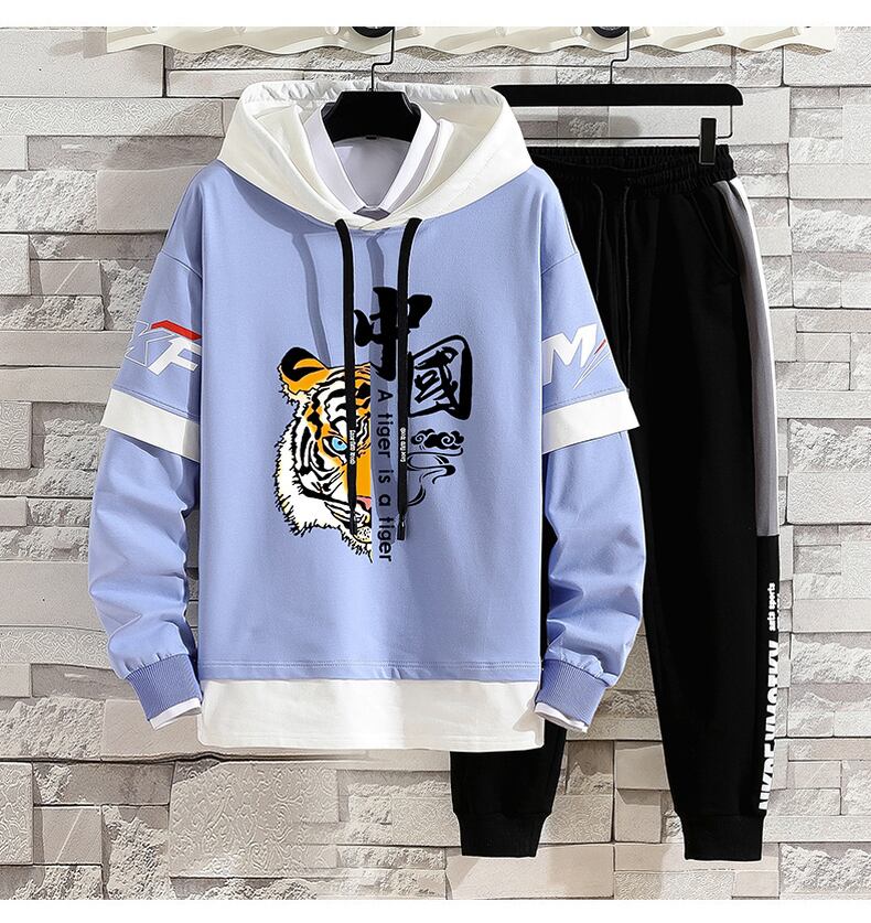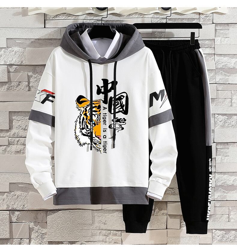 National tide sweater men's spring and autumn hooded fake two-piece jacket ins tide brand autumn top clothes casual sports suit カジュアル スプリング 春物 オータム 秋物 doushi69166412242