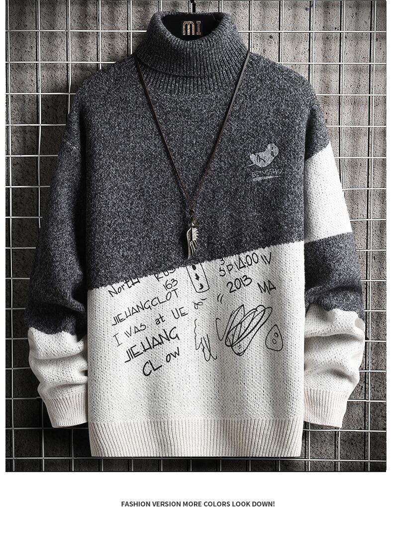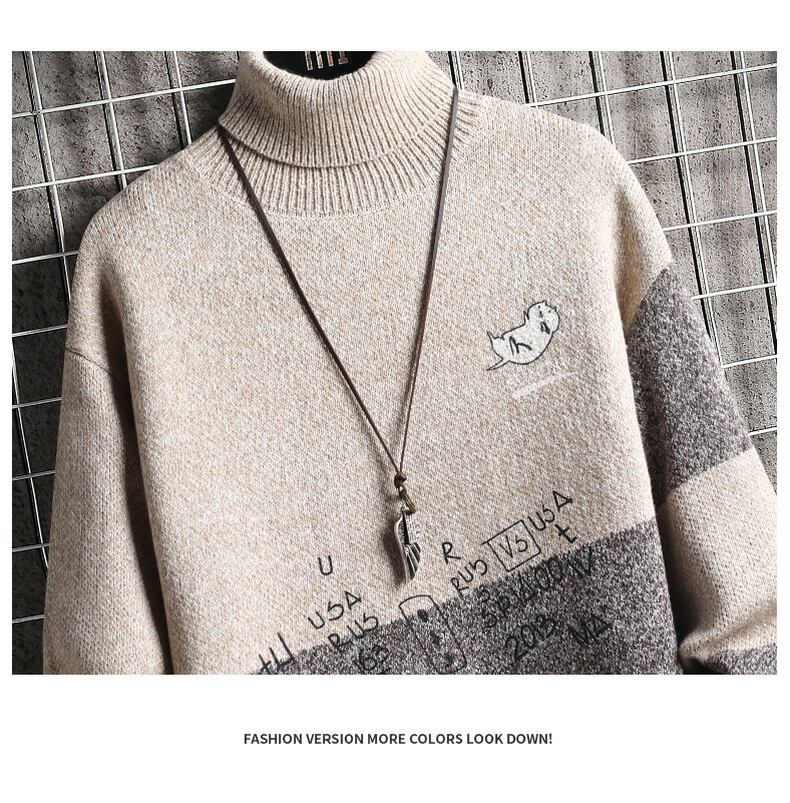 Turtleneck sweater men's autumn and winter version trend casual plus velvet thick knitted sweater men's imitation cashmere sweater sweater jacket カジュアル オータム 秋物 ウィンター 冬物 doushi46741218223