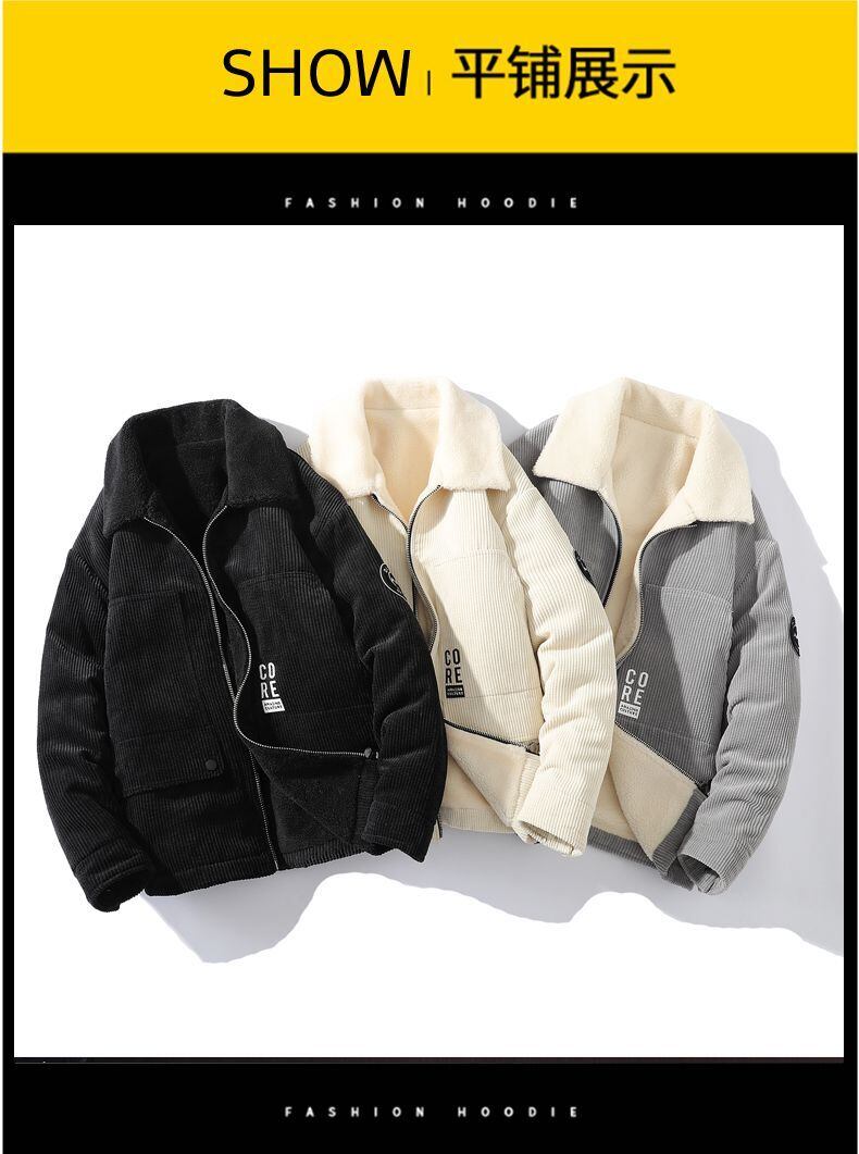 Men's velvet thickened autumn and winter corduroy lapel fur jacket youth fashion trend lamb velvet cotton coat コットン オータム 秋物 ウィンター 冬物 doushi57028582840