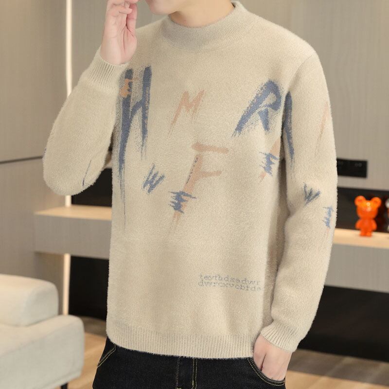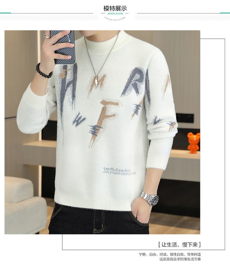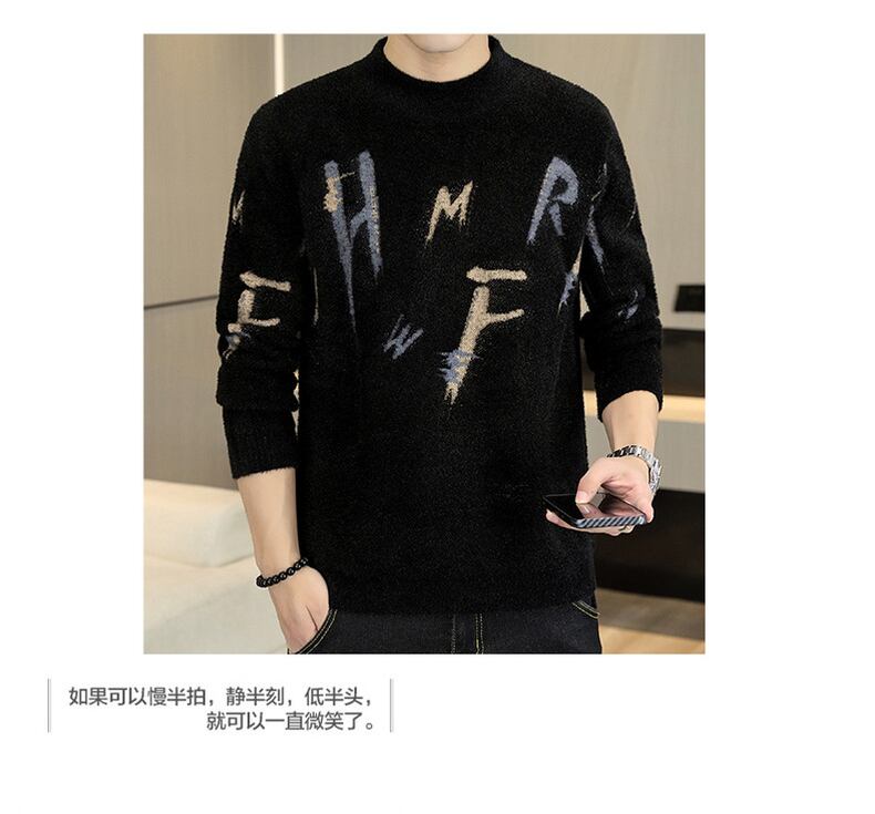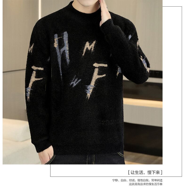 Autumn and winter imitation mink fleece sweater men's tide brand trend loose casual bottoming shirt wide version round neck sweater men カジュアル オータム 秋物 ウィンター 冬物 Oネック doushi36661645288