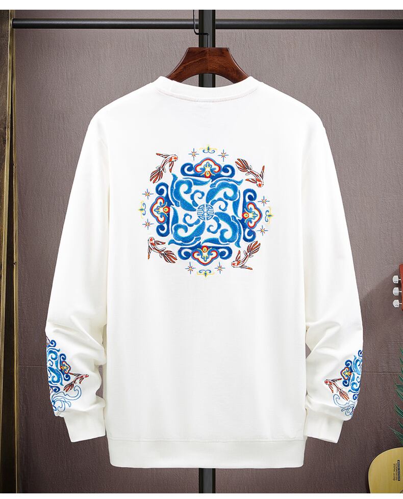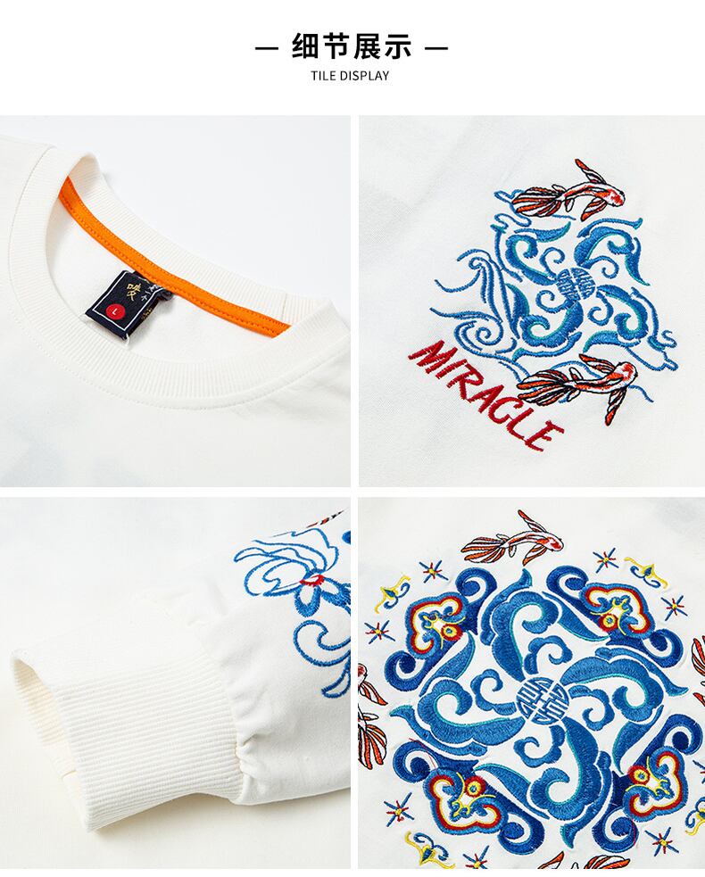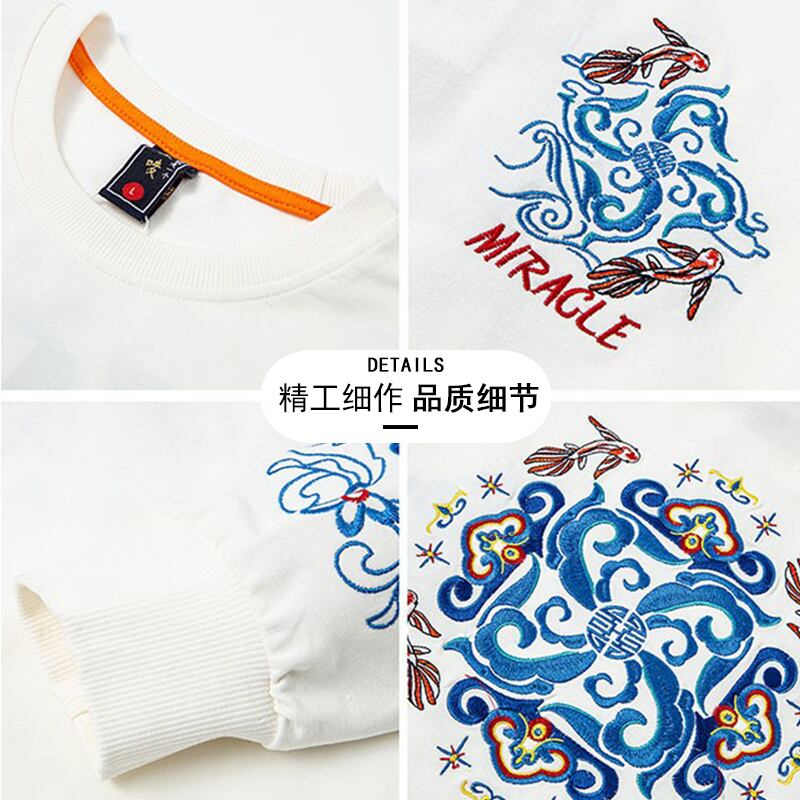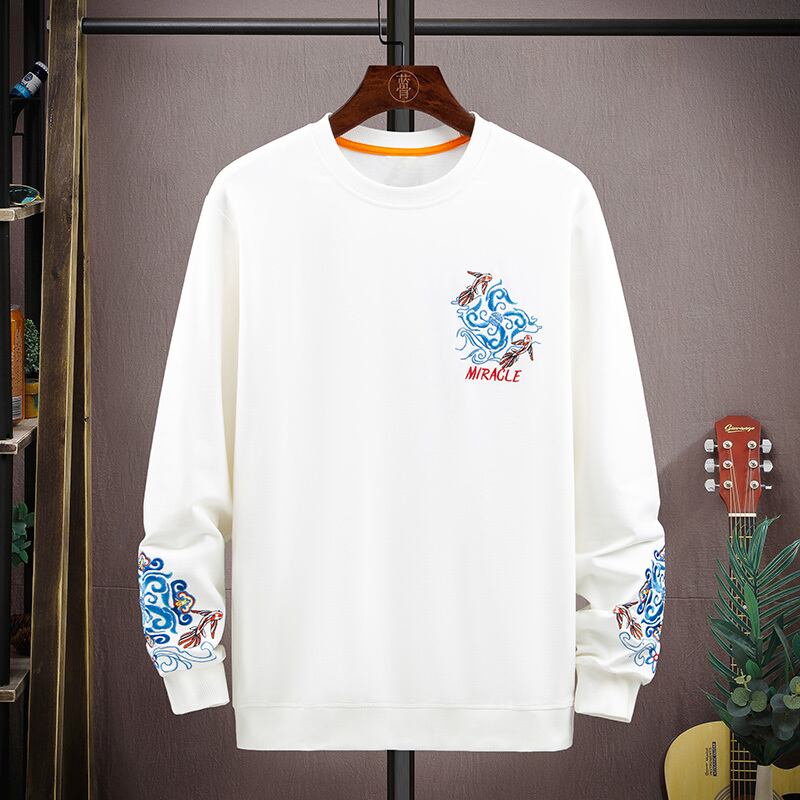 White sweater men's spring and autumn tide ins tide brand loose design sense of small country tide embroidery casual long-sleeved t-shirt ロング ホワイト カジュアル 刺繍 スプリング 春物 オータム 秋物 Tシャツ doushi67712374738