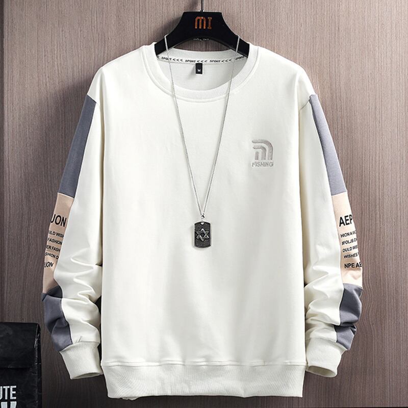 Round neck sweater men's long-sleeved t-shirt men's spring and autumn 2022 new embroidered loose students hit color stitching top ロング レッド 刺繍 スプリング 春物 オータム 秋物 Oネック Tシャツ ステッチ doushi5450491120