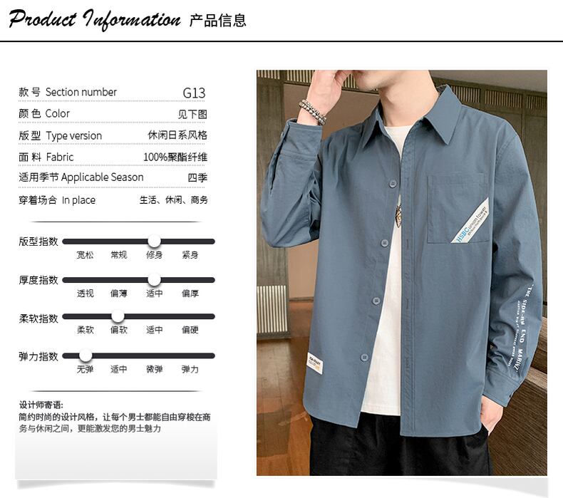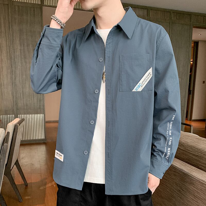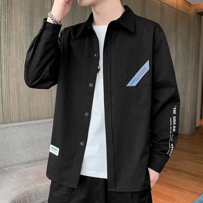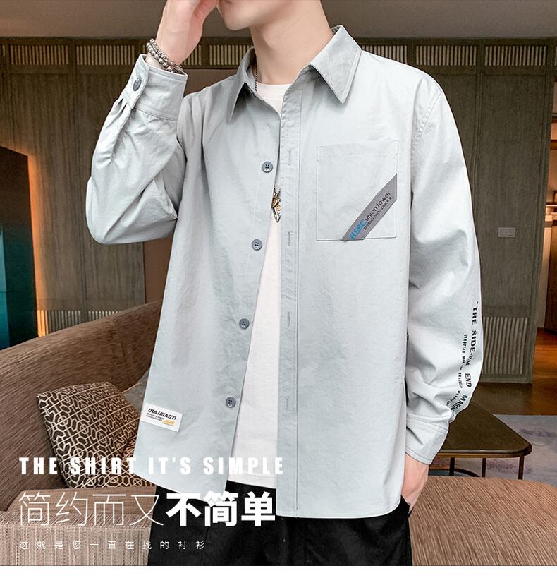 Shirt men's long-sleeved autumn handsome shirt ins trend Hong Kong style ese top thin casual tooling jacket ロング カジュアル オータム 秋物 doushi34740730883