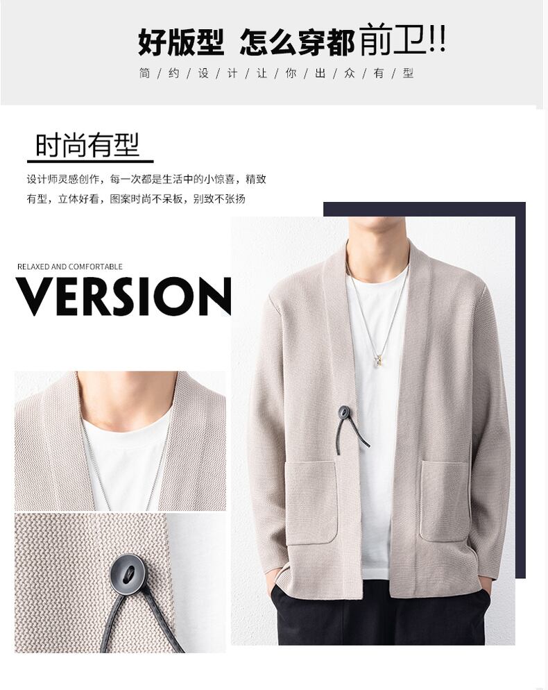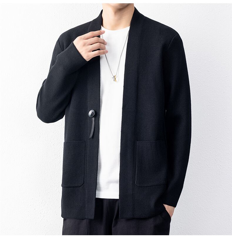 Knitted Cardigan Men's Autumn Thin Pocket Knitwear Men's Sweater Jacket Trend Outer Autumn Clothes カーディガン オータム 秋物 doushi31610179275