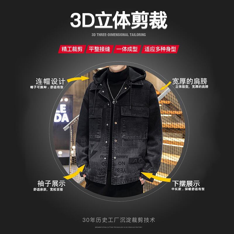Denim jacket men's spring and autumn new trend youth 2022 autumn and winter version plus velvet tide brand jacket men スプリング 春物 オータム 秋物 ウィンター 冬物 doushi62657538091