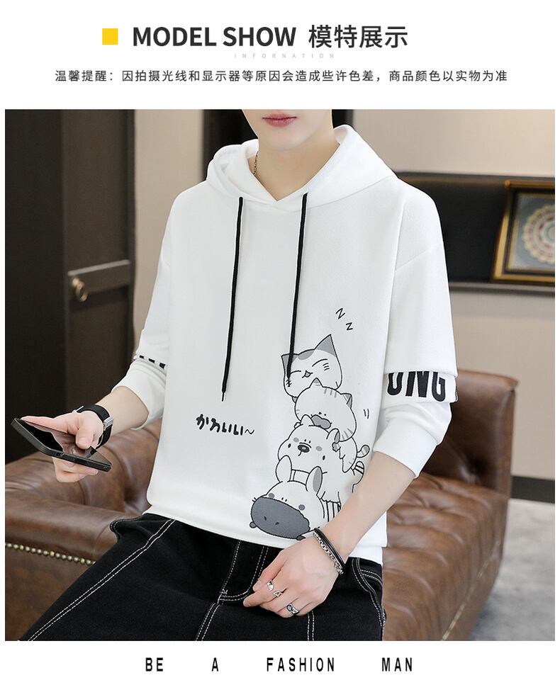 Cartoon printing sweater men's spring and autumn style trendy hooded jacket men's casual loose youth all-match top カジュアル スプリング 春物 オータム 秋物 doushi63663558809