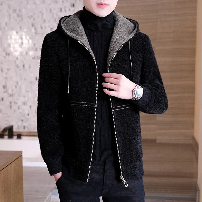 Fur autumn and winter woolen coat men's trend woolen coat gold mink fleece hooded windbreaker 2022 new オータム 秋物 ウィンター 冬物 doushi77395680039
