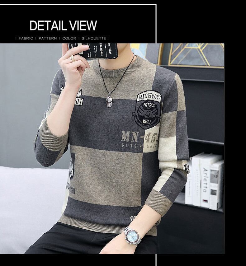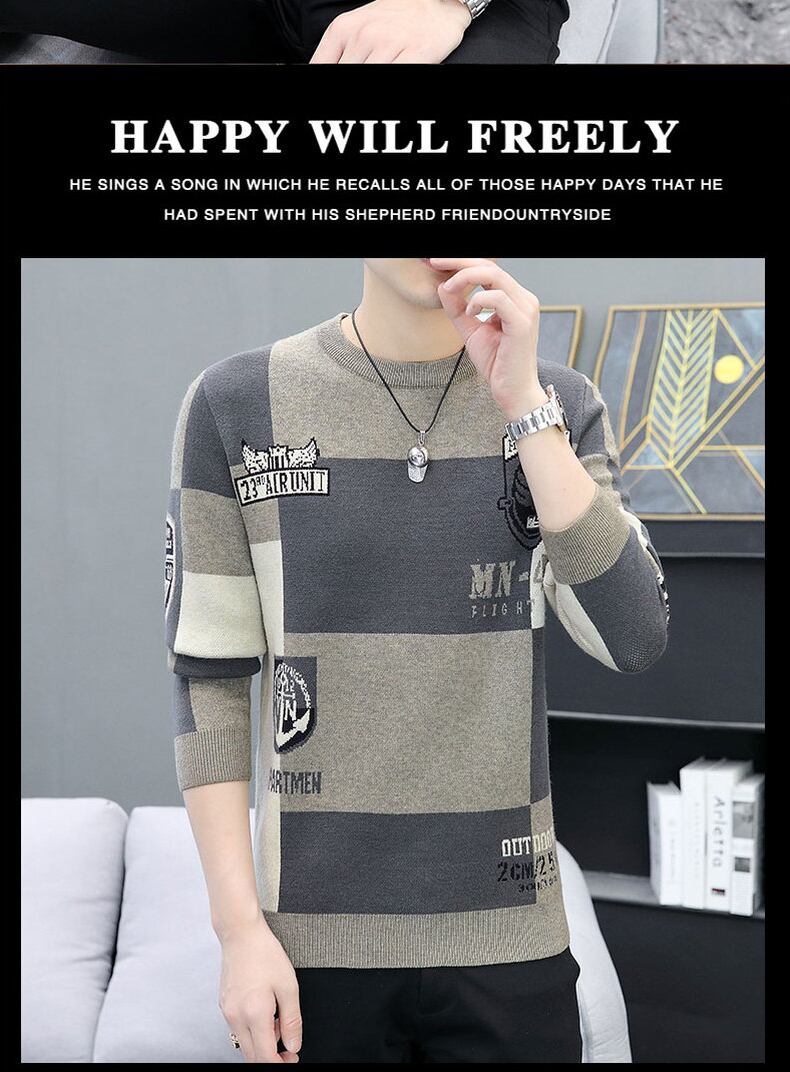 Sweater men's 2022 spring and autumn new trend loose round neck color matching bottoming shirt tide brand all-match knitted sweater スプリング 春物 オータム 秋物 Oネック doushi83998830734
