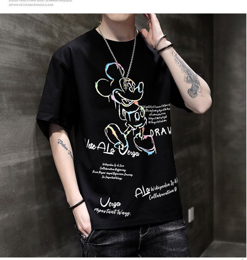 2022 summer new short-sleeved t-shirt men's ins tide brand trend cartoon printing half-sleeved men's t-shirt loose clothes サマー 夏物 Tシャツ doushi6025523956
