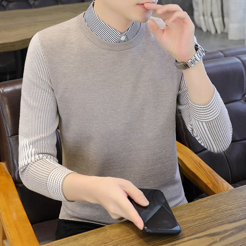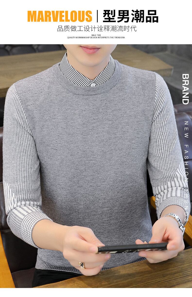 Long-sleeved t-shirt men's spring and autumn tide brand thin shirt collar autumn top fake two-piece knitted bottoming polo shirt ロング スプリング 春物 オータム 秋物 Tシャツ doushi91607678042