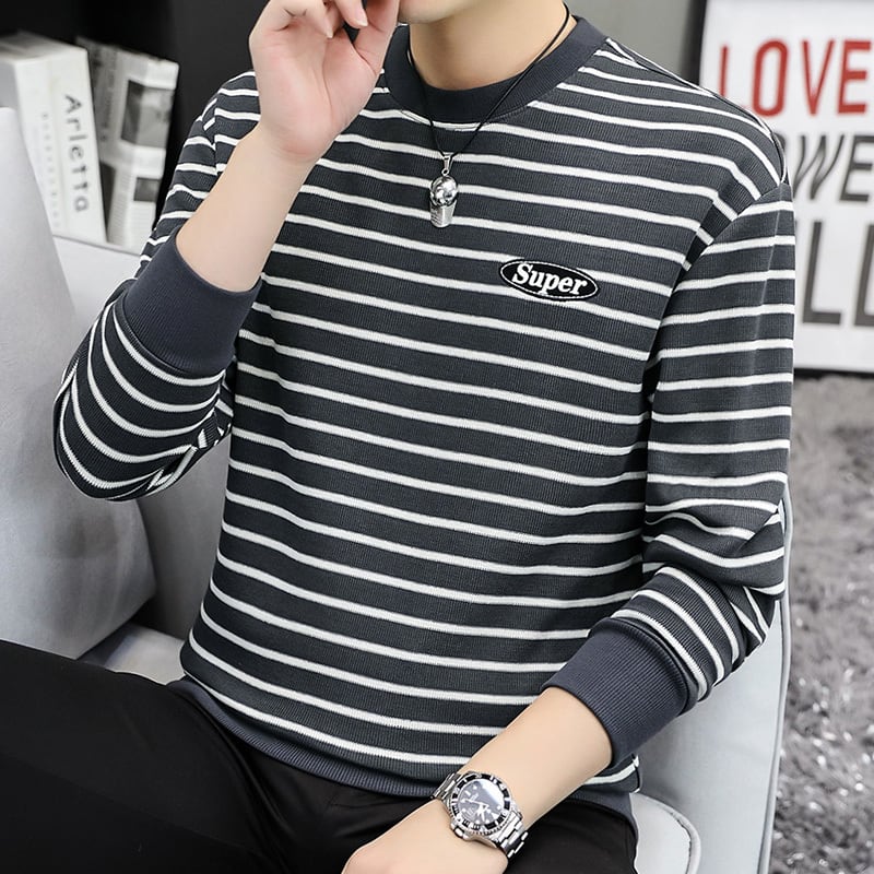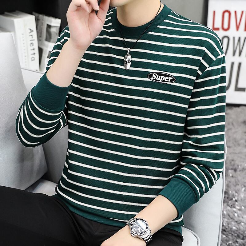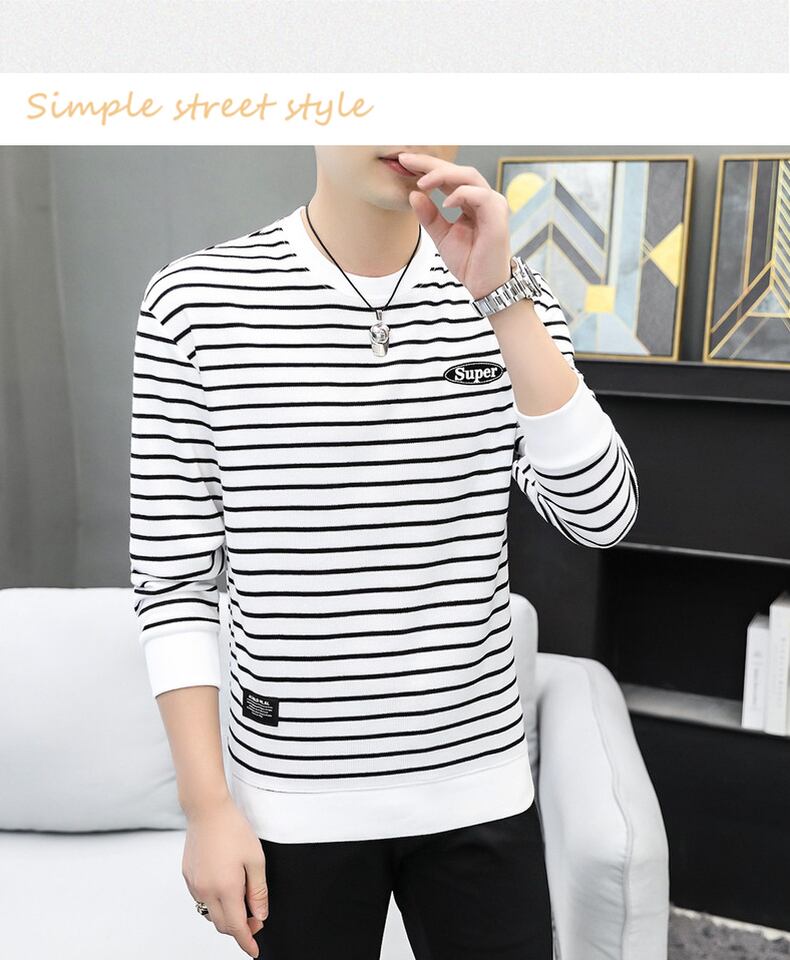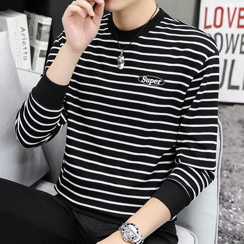 2022 long-sleeved sweater men's autumn new top loose bottoming small shirt all-match knitted sweater t-shirt striped t-shirt ロング オータム 秋物 ストライプ Tシャツ doushi6125169124