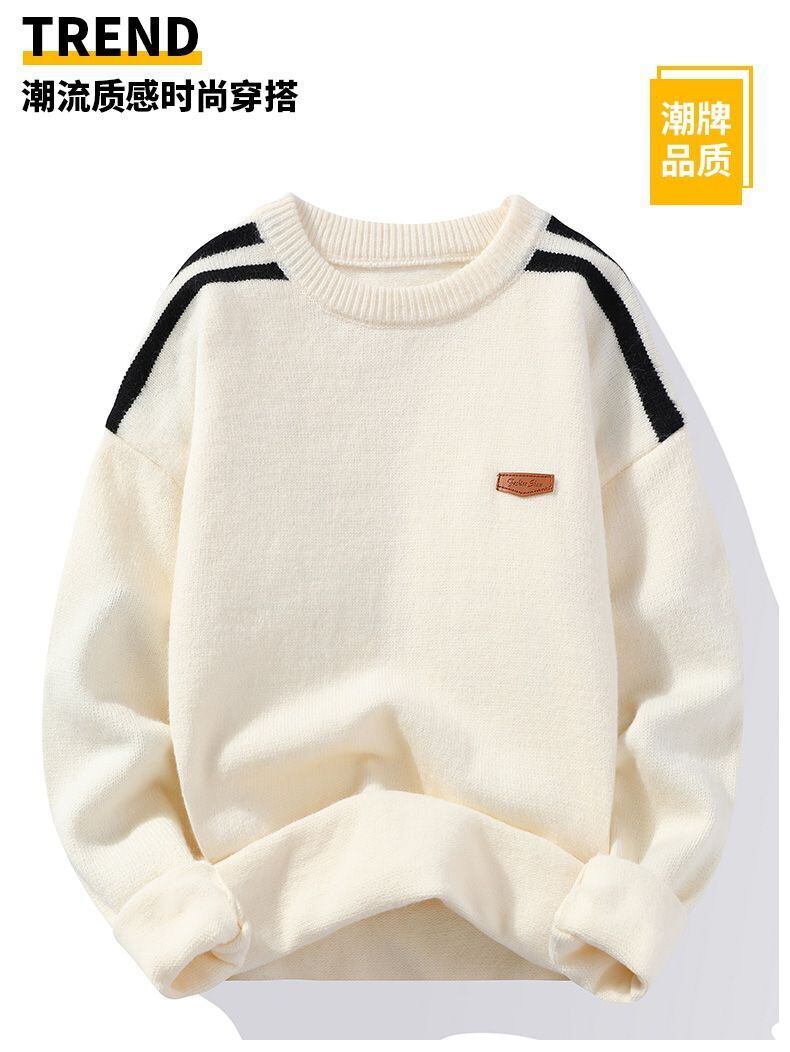 2022 new autumn and winter plus velvet thick bottoming sweater wool knitted sweater with warm top sweater men's winter オータム 秋物 ウィンター 冬物 doushi60204407577