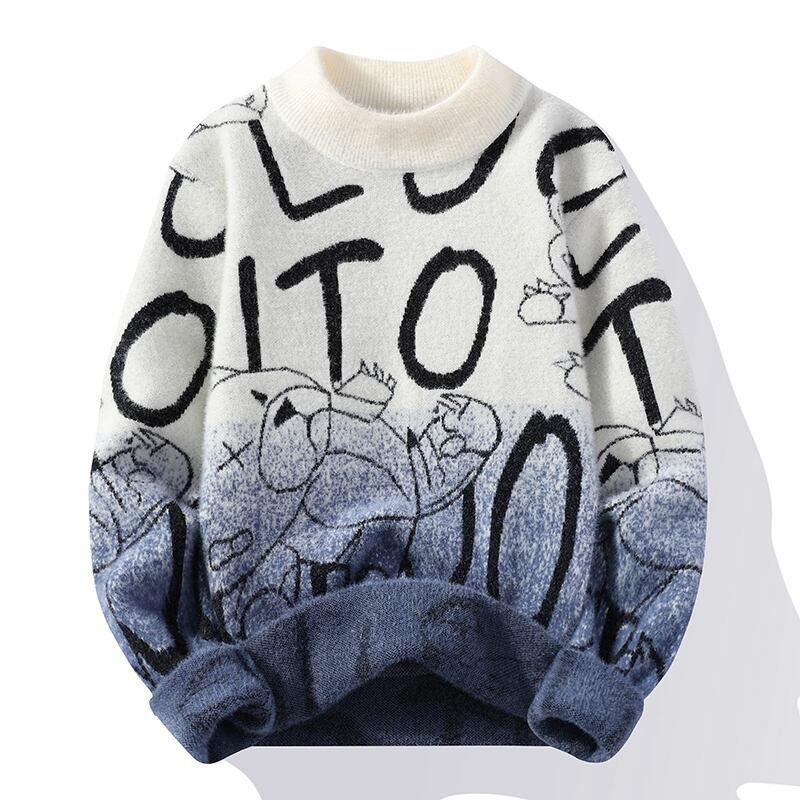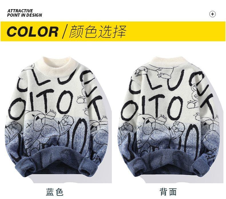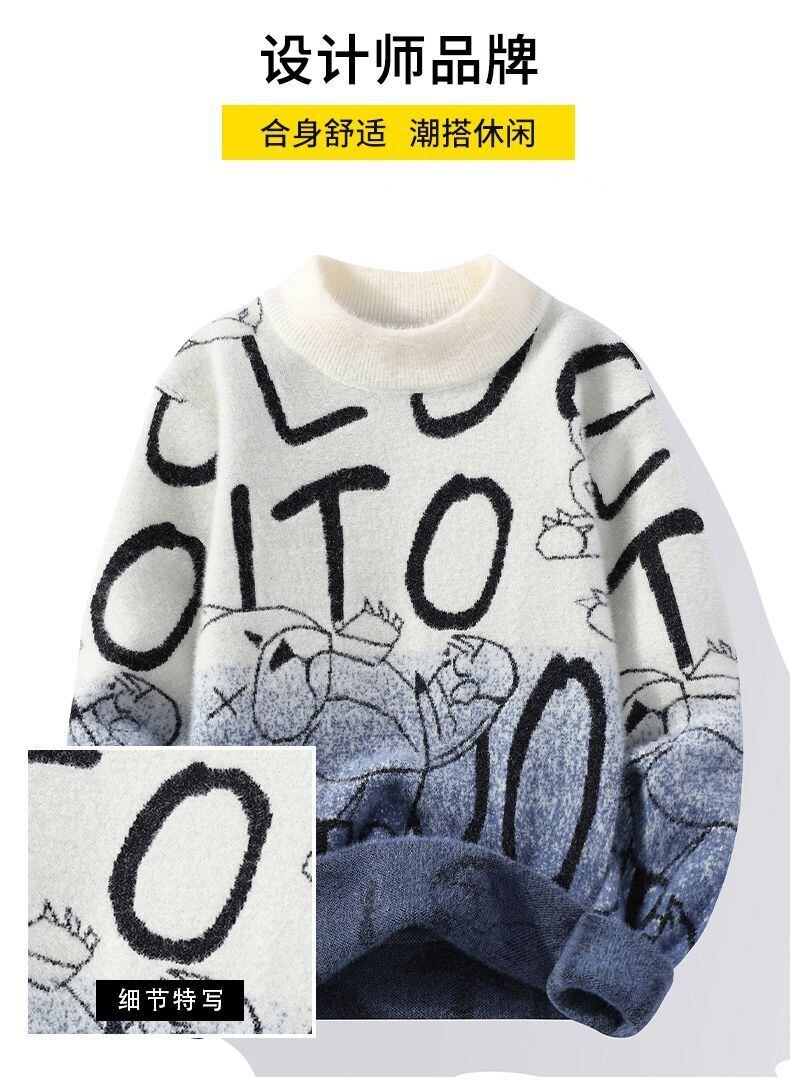Men's sweater autumn and winter base version trend mink cashmere sweater thickened knitted student plus velvet warm clothes オータム 秋物 ウィンター 冬物 doushi22730800276