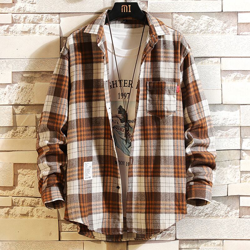 ese plaid shirt men's long-sleeved summer thin coat men's inch shirt spring and autumn models salt handsome casual shirt ロング カジュアル スプリング 春物 サマー 夏物 オータム 秋物 doushi98315201825