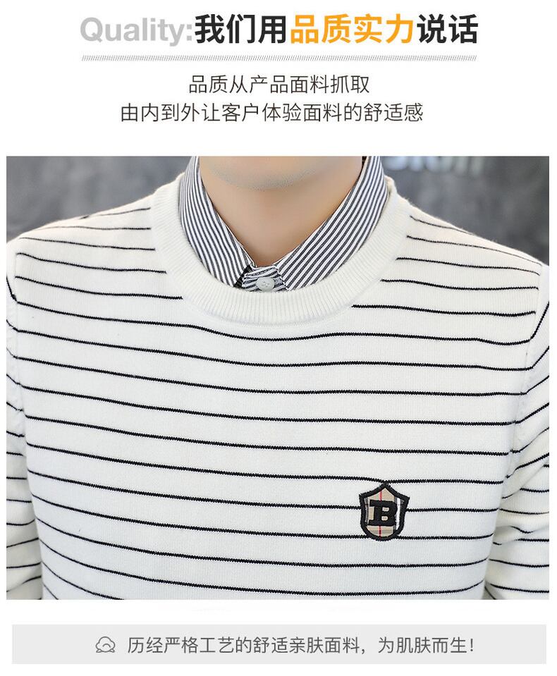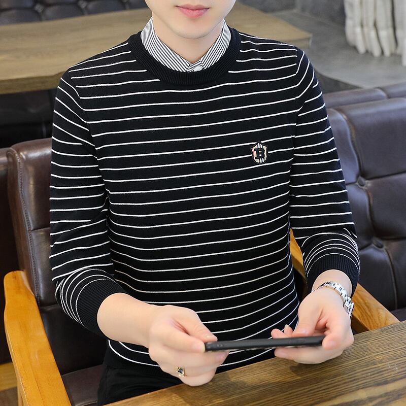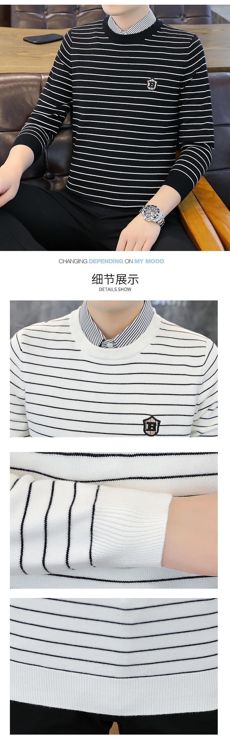 Fake two-piece long-sleeved t-shirt men's spring and autumn thin striped shirt collar bottoming shirt tide brand embroidery autumn top ロング 刺繍 スプリング 春物 オータム 秋物 ストライプ Tシャツ doushi22618421798