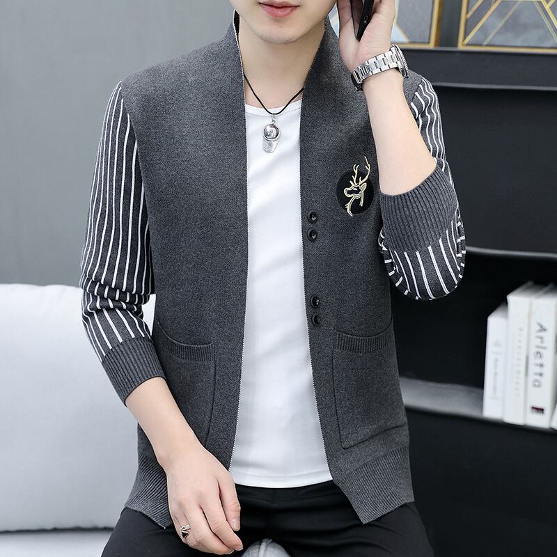 Stand-up collar knitted cardigan men's jacket spring and autumn version trend casual handsome new autumn sweater jacket カジュアル カーディガン スプリング 春物 オータム 秋物 doushi92176578657