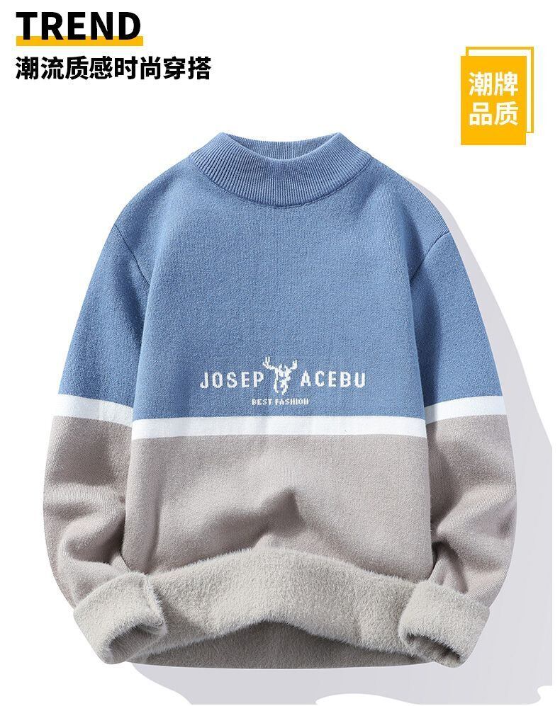 Mink velvet half turtleneck sweater men's slim bottoming shirt plus velvet thickened warm wool sweater in autumn and winter オータム 秋物 ウィンター 冬物 スリム doushi13126038617