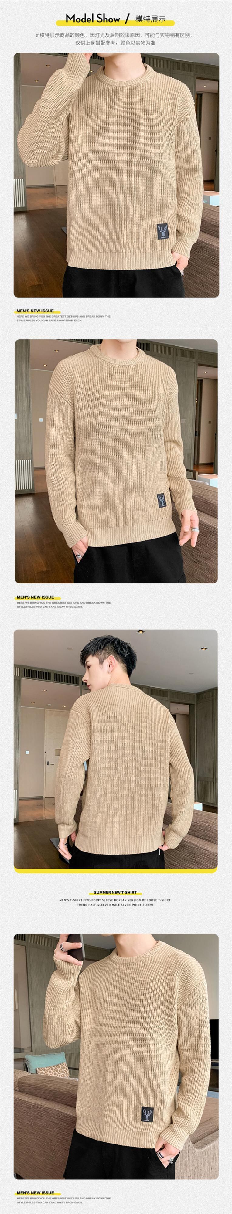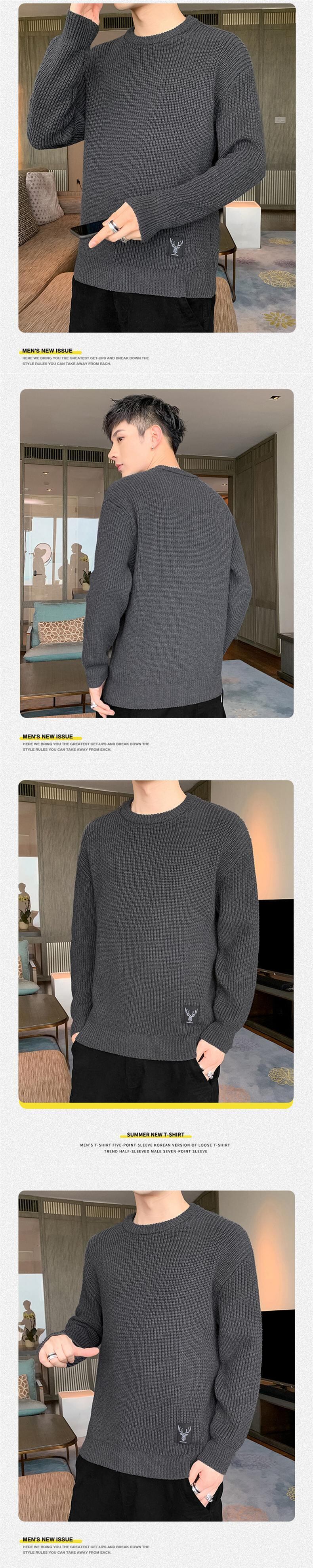 Sweater men's autumn and winter new all-match long-sleeved thick knitted sweater fashion trend personality deer embroidery label loose top ロング 刺繍 オータム 秋物 ウィンター 冬物 doushi95334689144