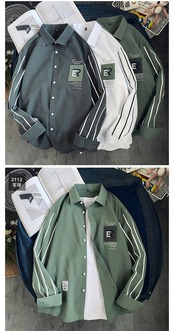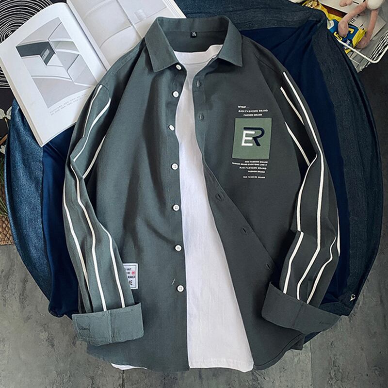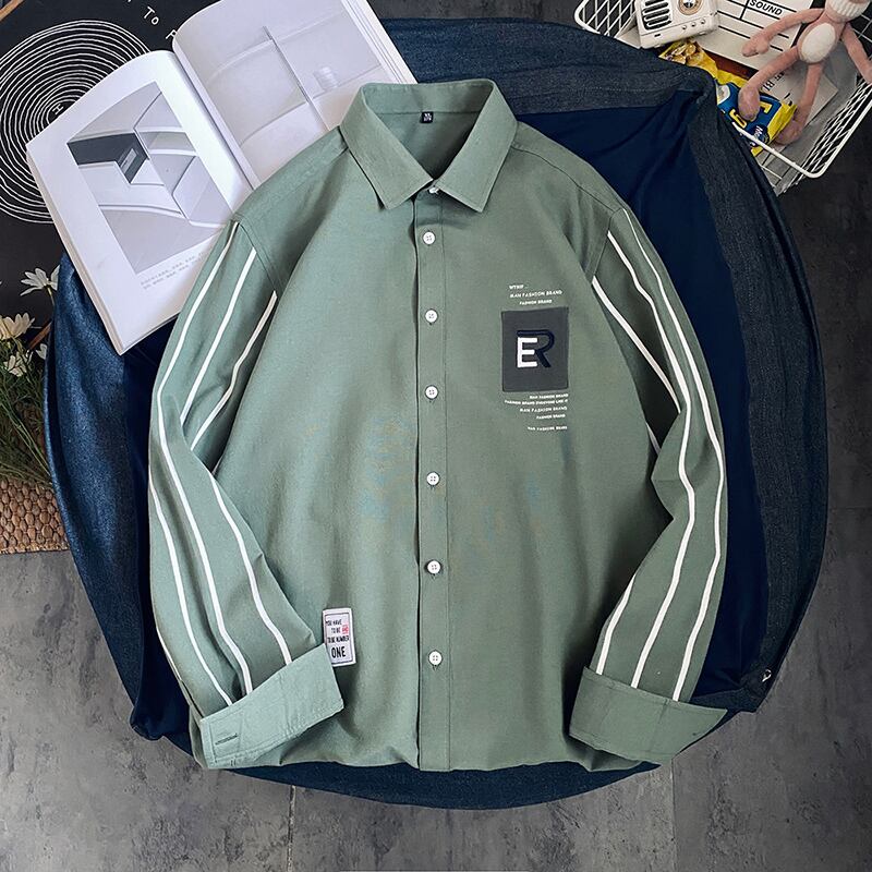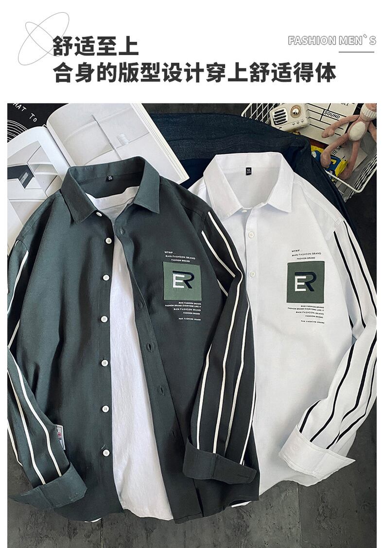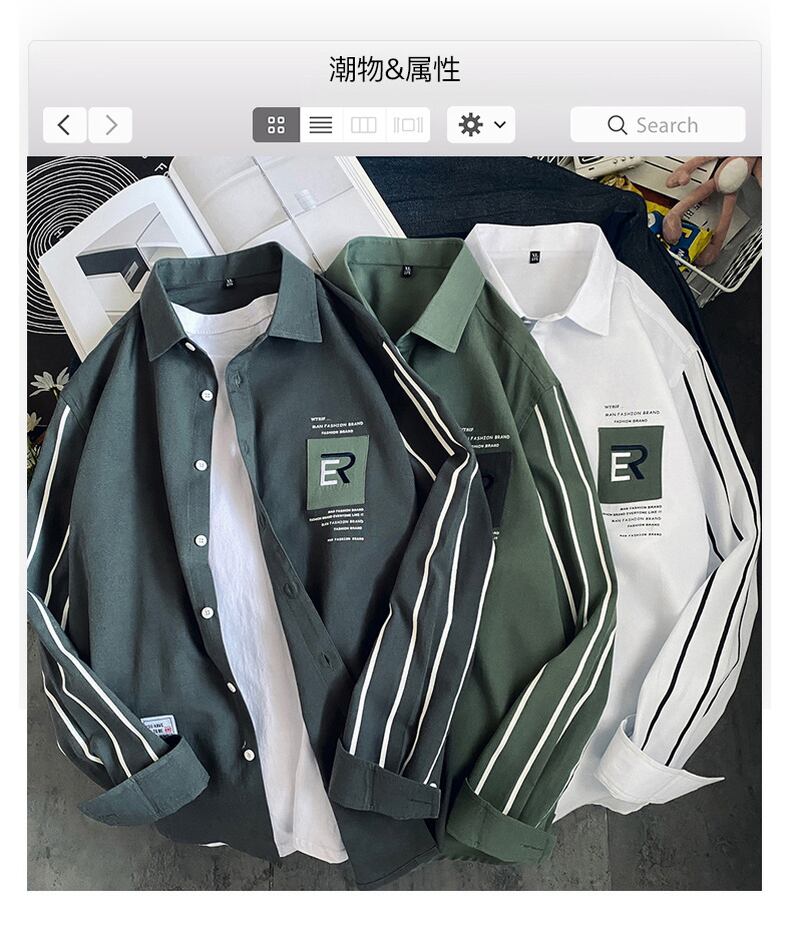 Shirt men's long-sleeved Hong Kong style ese trend 2022 new striped ruffian handsome shirt boys autumn casual jacket ロング カジュアル オータム 秋物 ストライプ doushi91450353561
