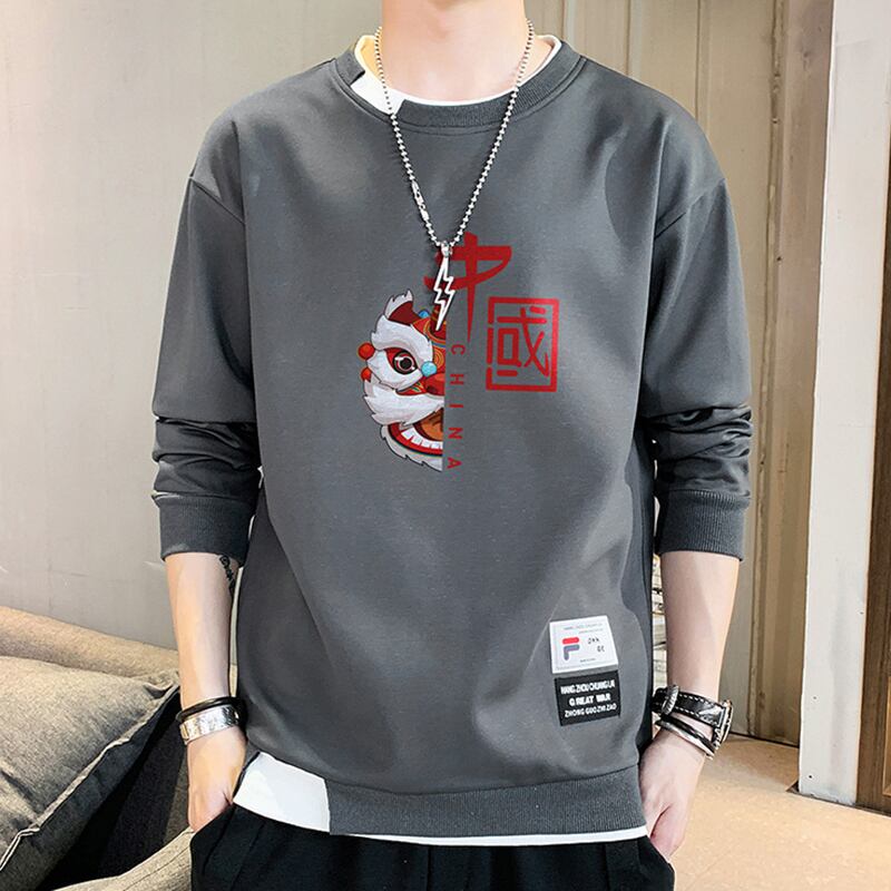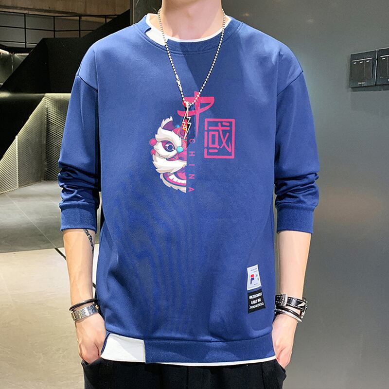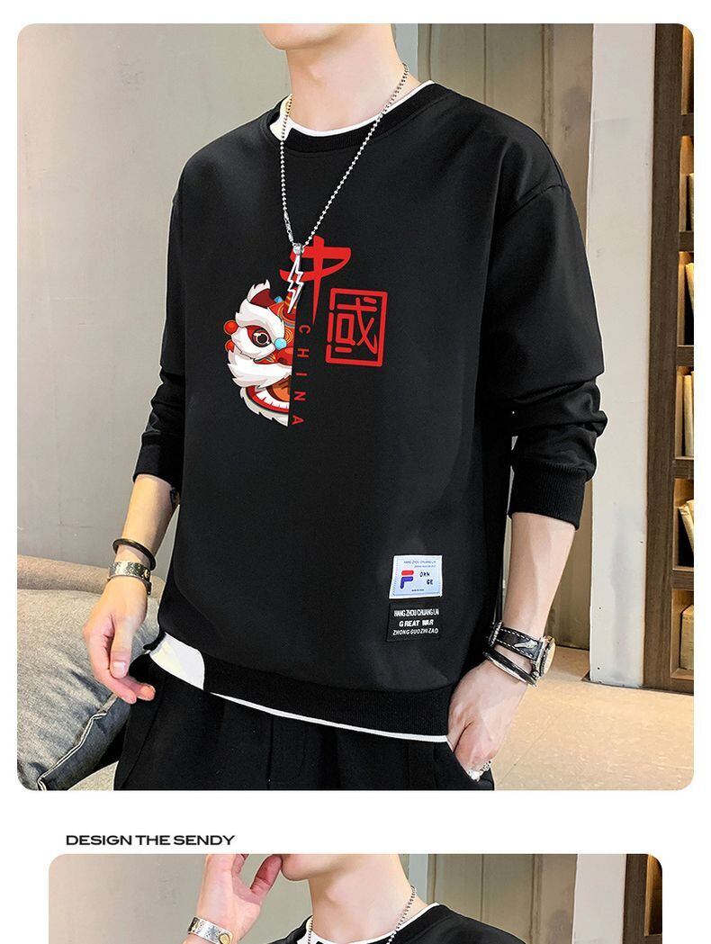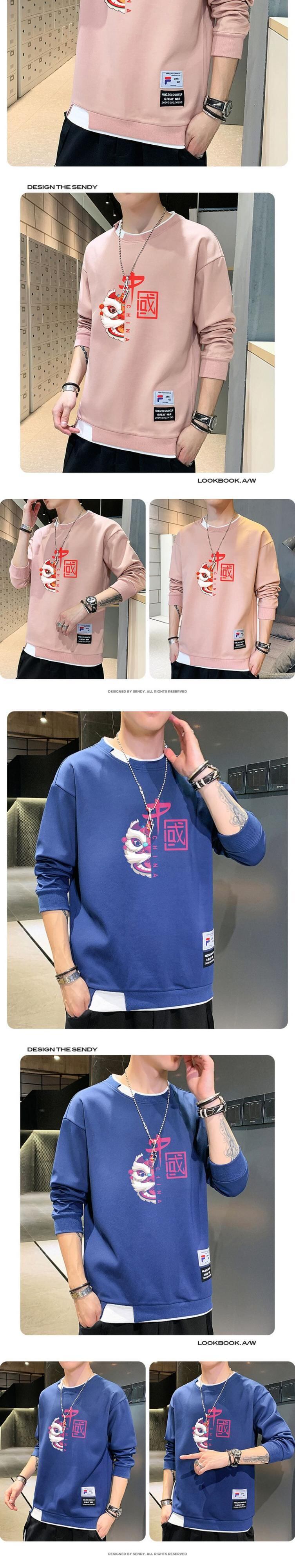 Men's sweater spring and autumn national tide loose fake two-piece long-sleeved t-shirt handsome wild autumn clothes casual round neck top ロング カジュアル スプリング 春物 オータム 秋物 Oネック Tシャツ doushi29510769018