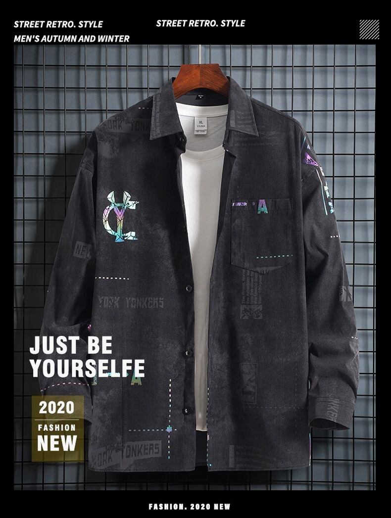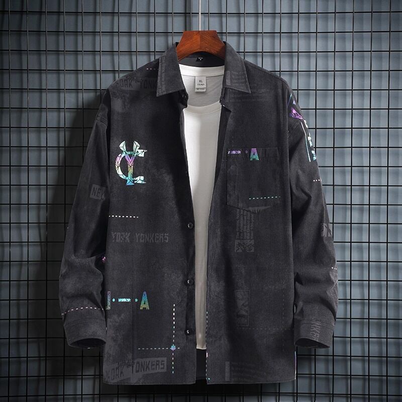 Shirt men's Hong Kong style loose reflective version trendy ruffian handsome spring and autumn new long-sleeved casual tooling shirt jacket ロング カジュアル スプリング 春物 オータム 秋物 doushi59569075104
