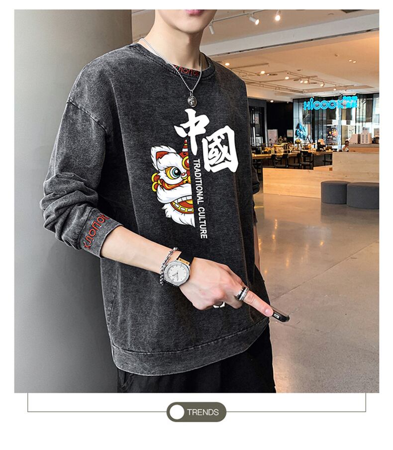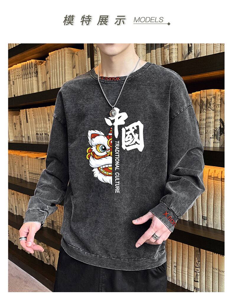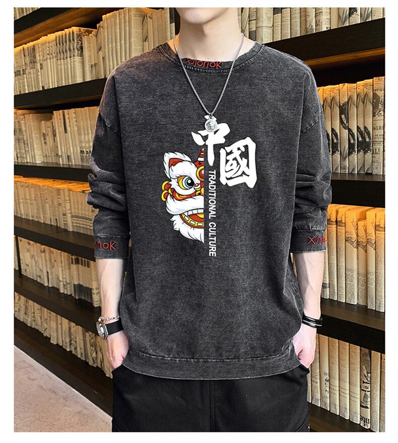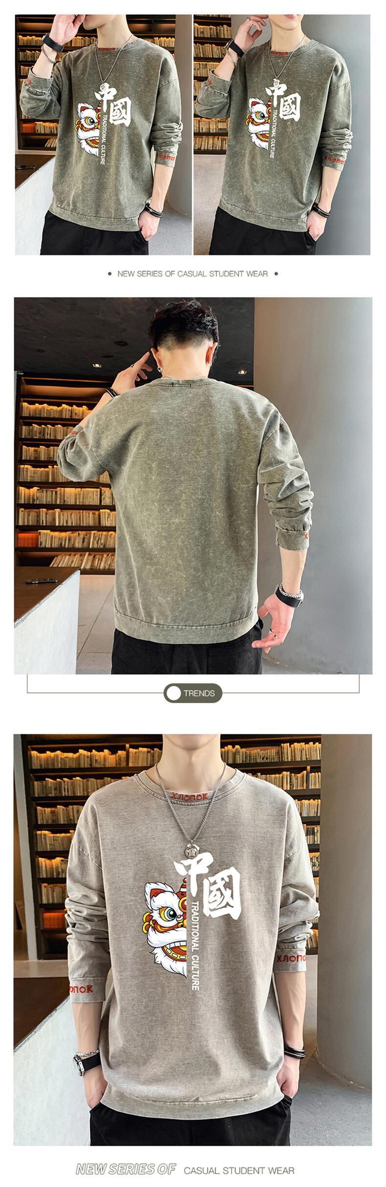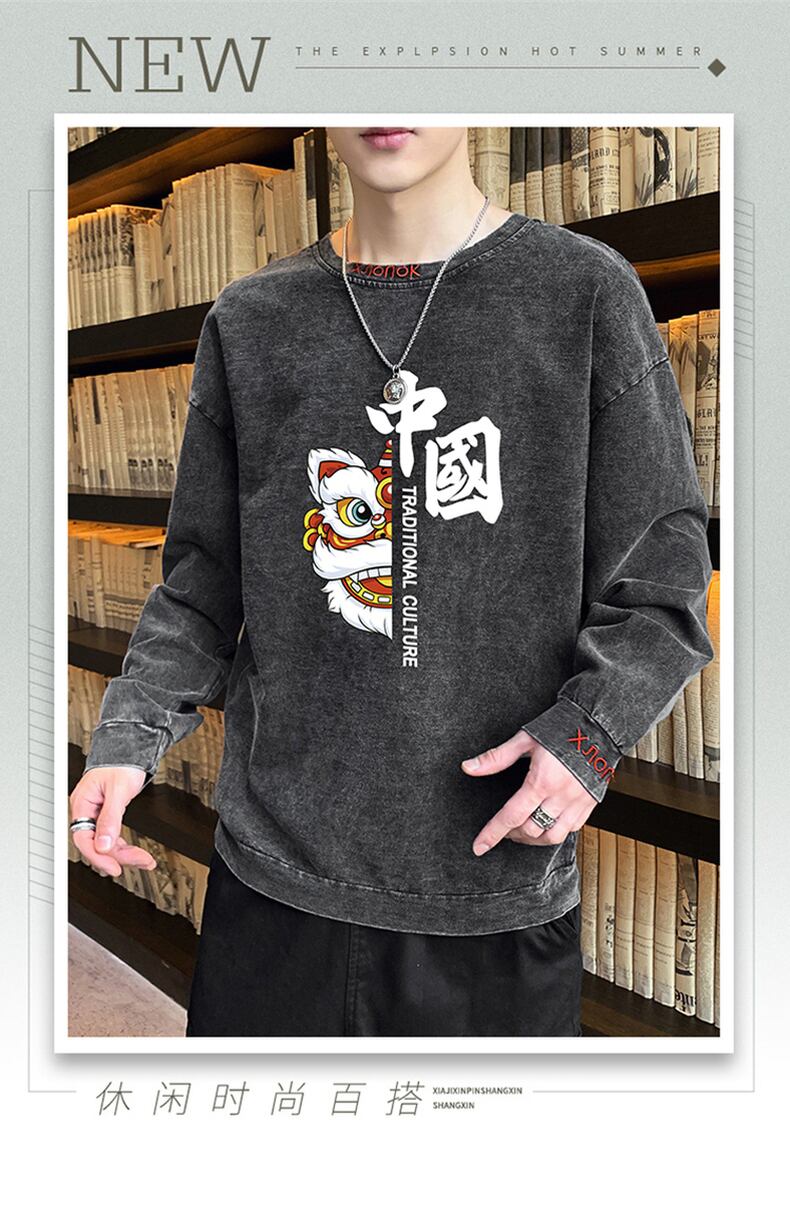 National tide long-sleeved T-shirt men's spring and autumn 2022 new loose tide brand denim sweater ins trend boys autumn clothes ロング スプリング 春物 オータム 秋物 Tシャツ doushi19760479056
