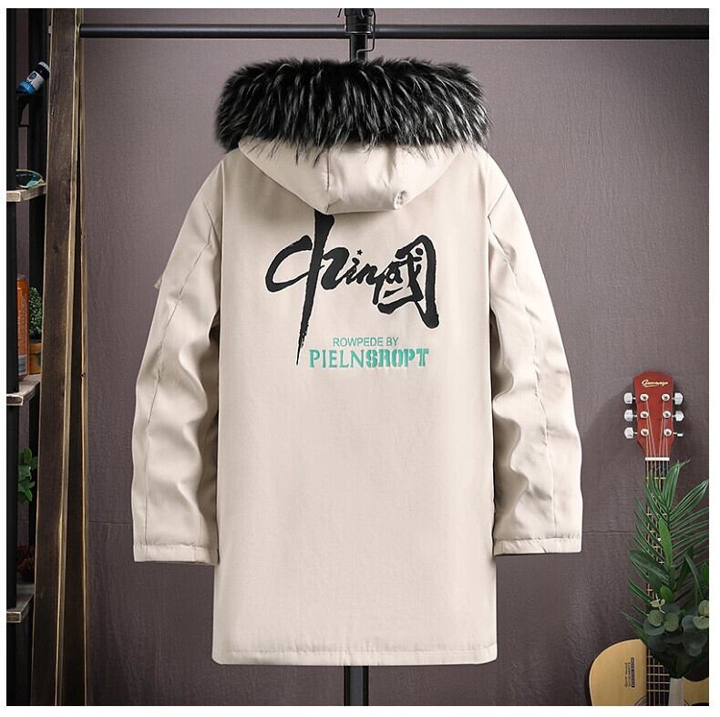 ミドル丈コート メンズ 秋冬 豪華なフリース 厚い綿コート メンズ ティーンエイジャー ビッグファーカラー フード付き ナショナルタイド オーバーコート コットン オータム 秋物 ウィンター 冬物 undao59451447595