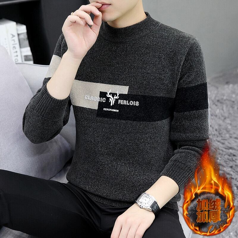 冬ハーフタートルネックセーターメンズトレンディルーズ暖かいトップ 1 パッド入りぬいぐるみ厚い冬ボトムニットウェア ウィンター 冬物 undao24887708339
