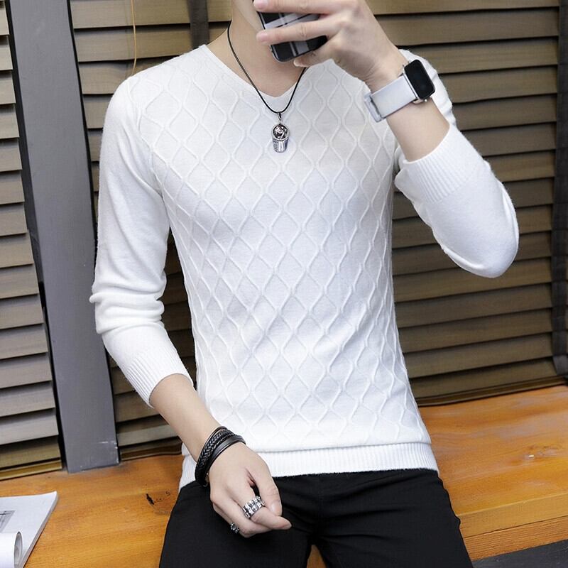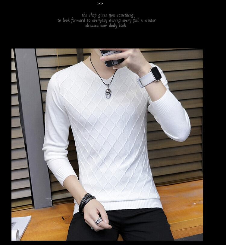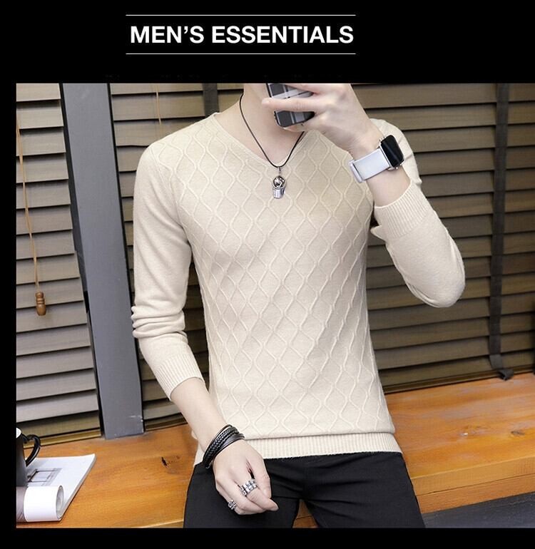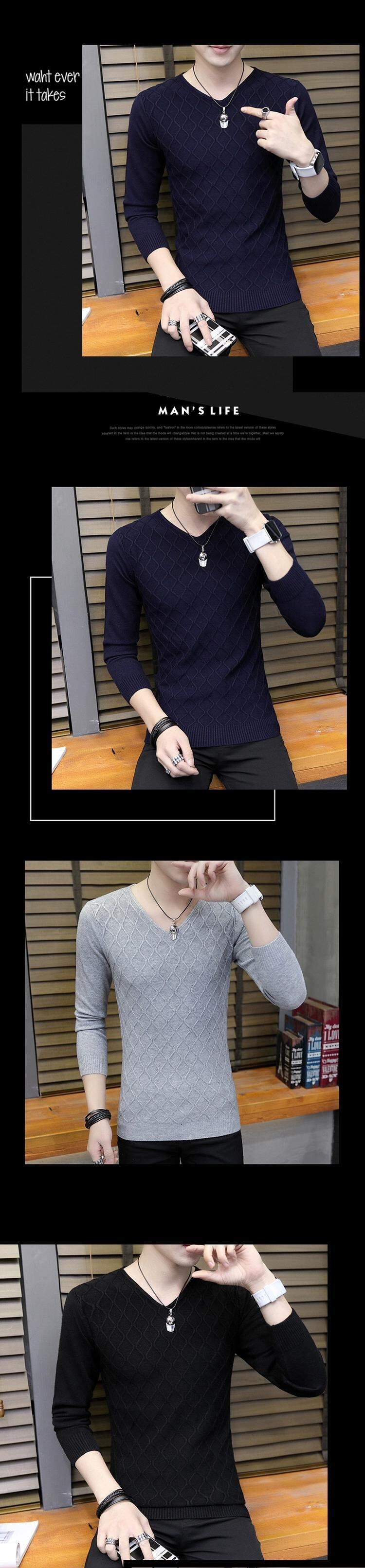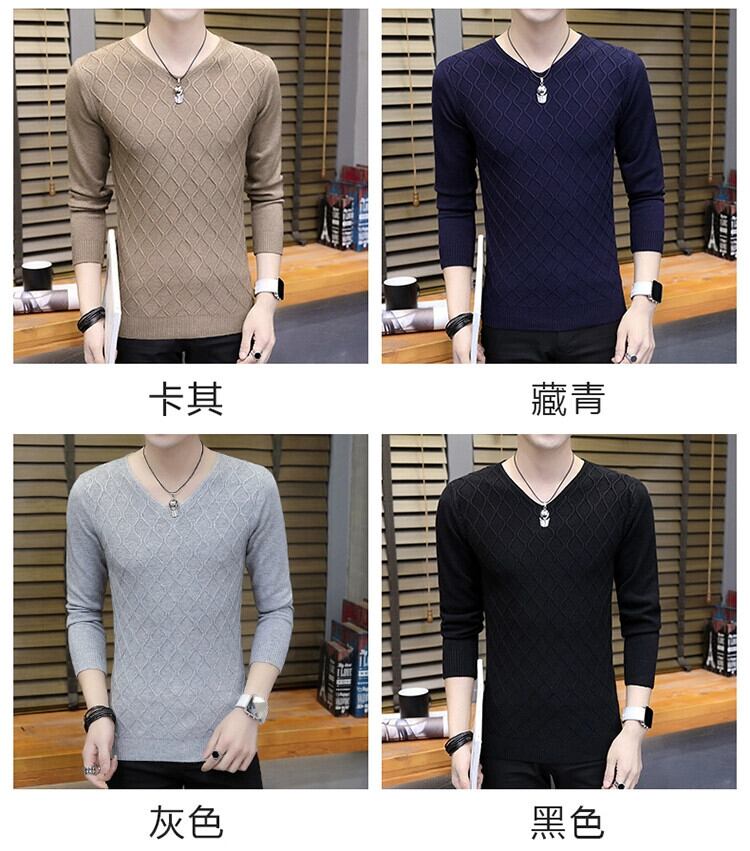 秋の新メンズ薄セクション tシャツ V ネックセーター長袖セーターメンズアイスシルク秋服小さなシャツ tシャツ服潮 ロング オータム 秋物 Vネック undao82198981656
