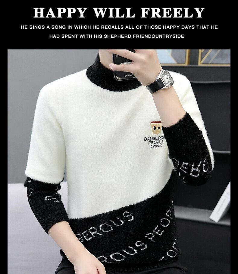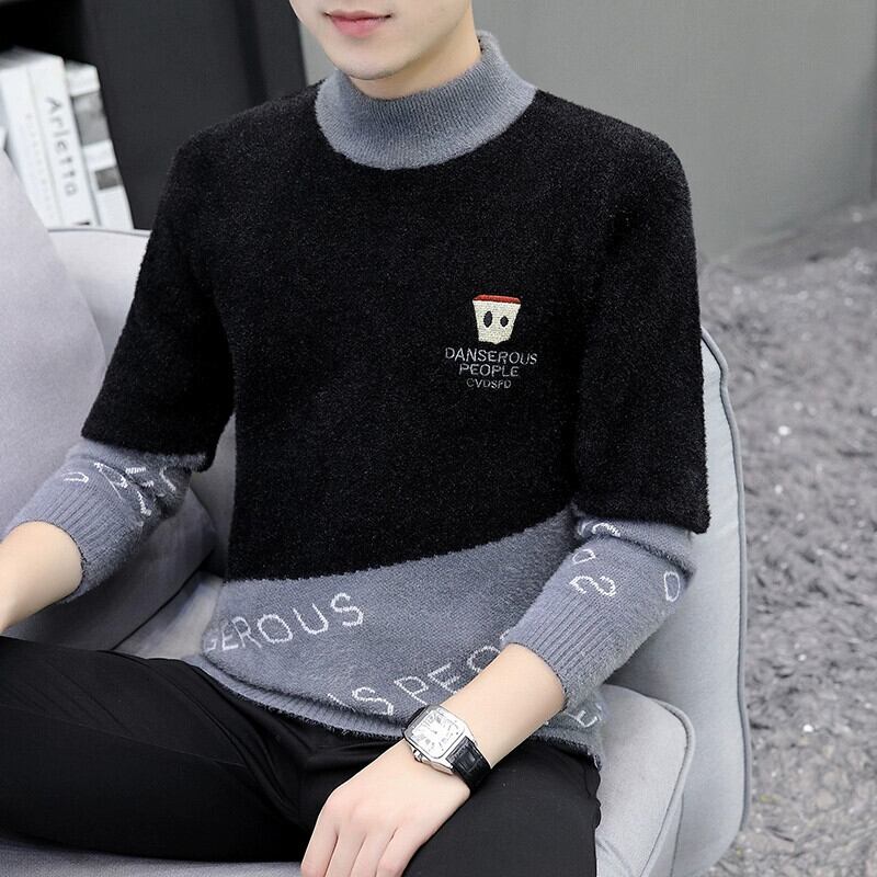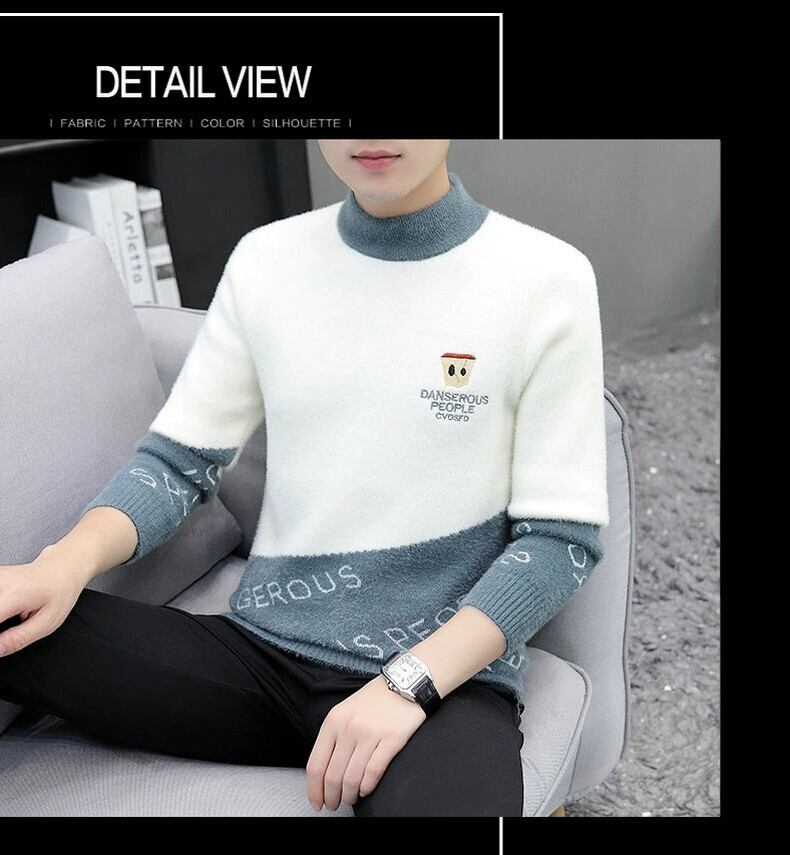 ユースミンクフリースセーター2023新しい男子高校生冬ハーフハイカラーボトリングシャツプラスベルベットと厚手 ウィンター 冬物 undao1119340137