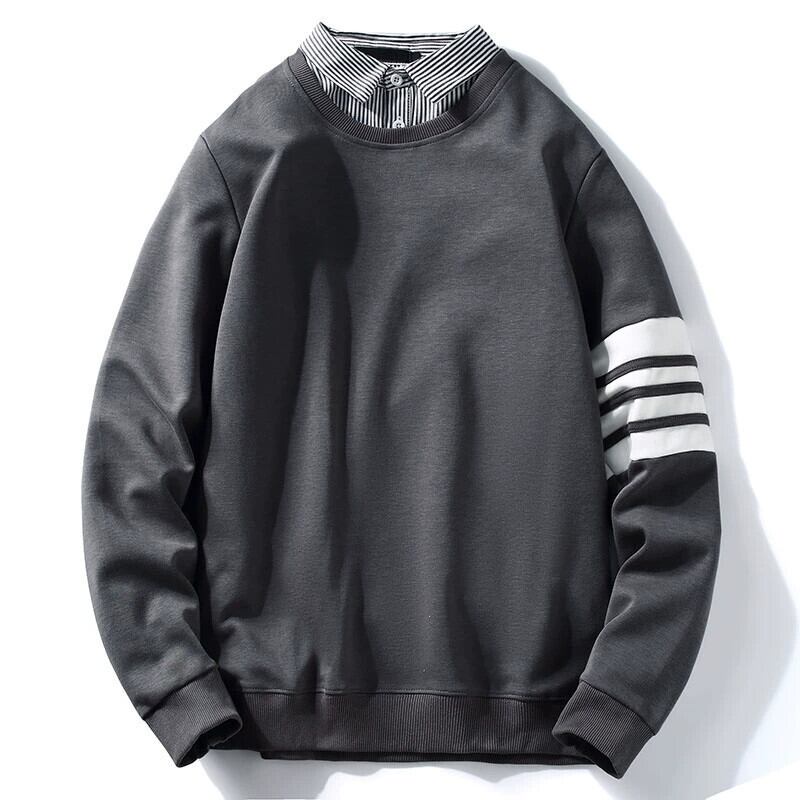 フリースセーターメンズ春秋スタイル2023新しいシャツ襟トレンドメンズ秋服若者偽ツーピーストップ スプリング 春物 オータム 秋物 undao40215122914