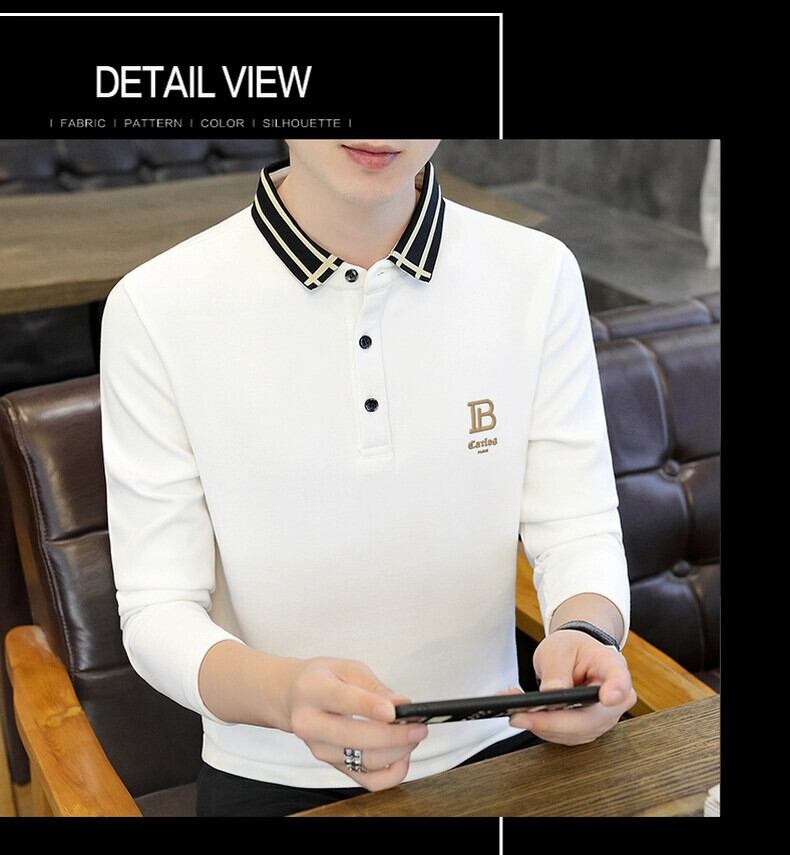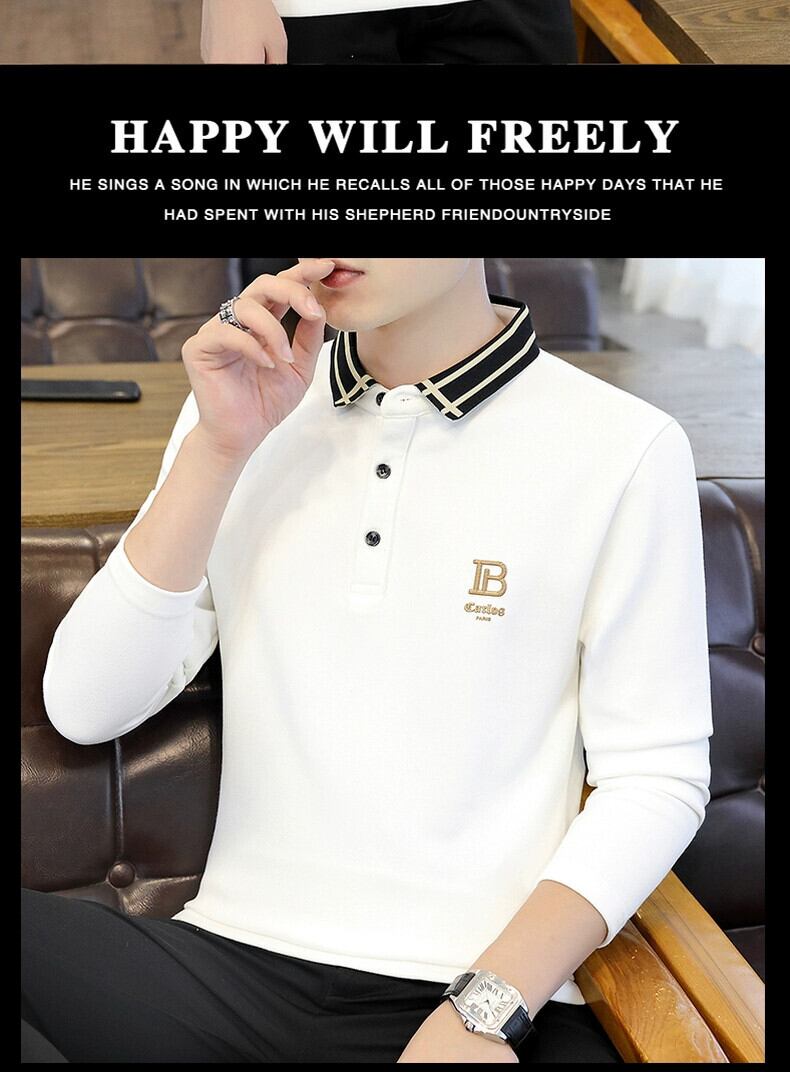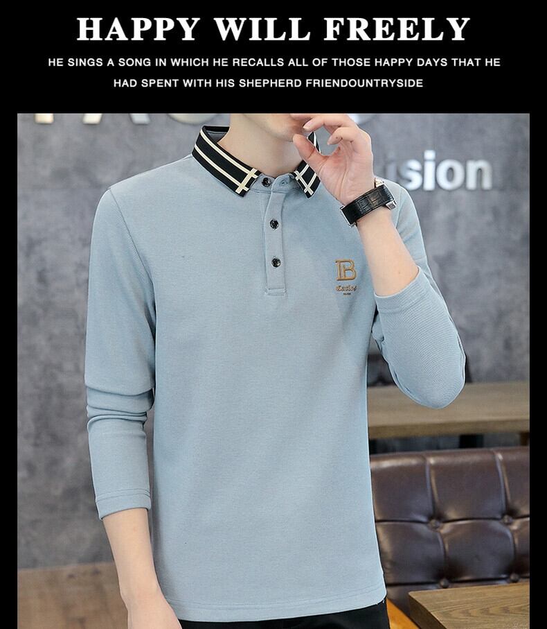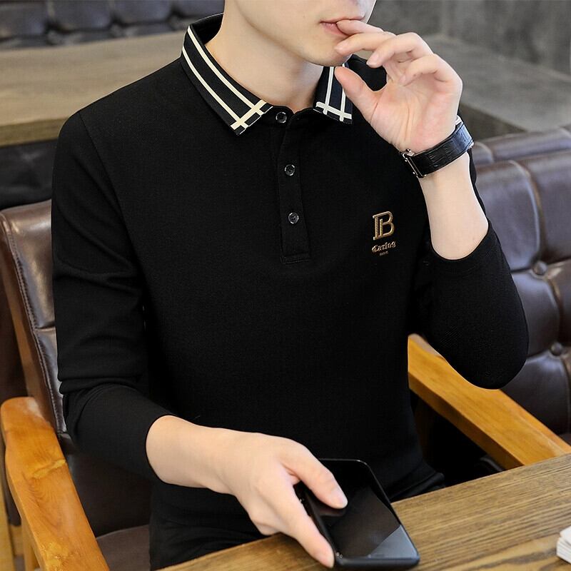 メンズ長袖 tシャツ襟付き 2023 新しい秋服底小さなシャツレタートップ純綿ラペルポロシャツ ロング コットン オータム 秋物 ピュア undao67453842337