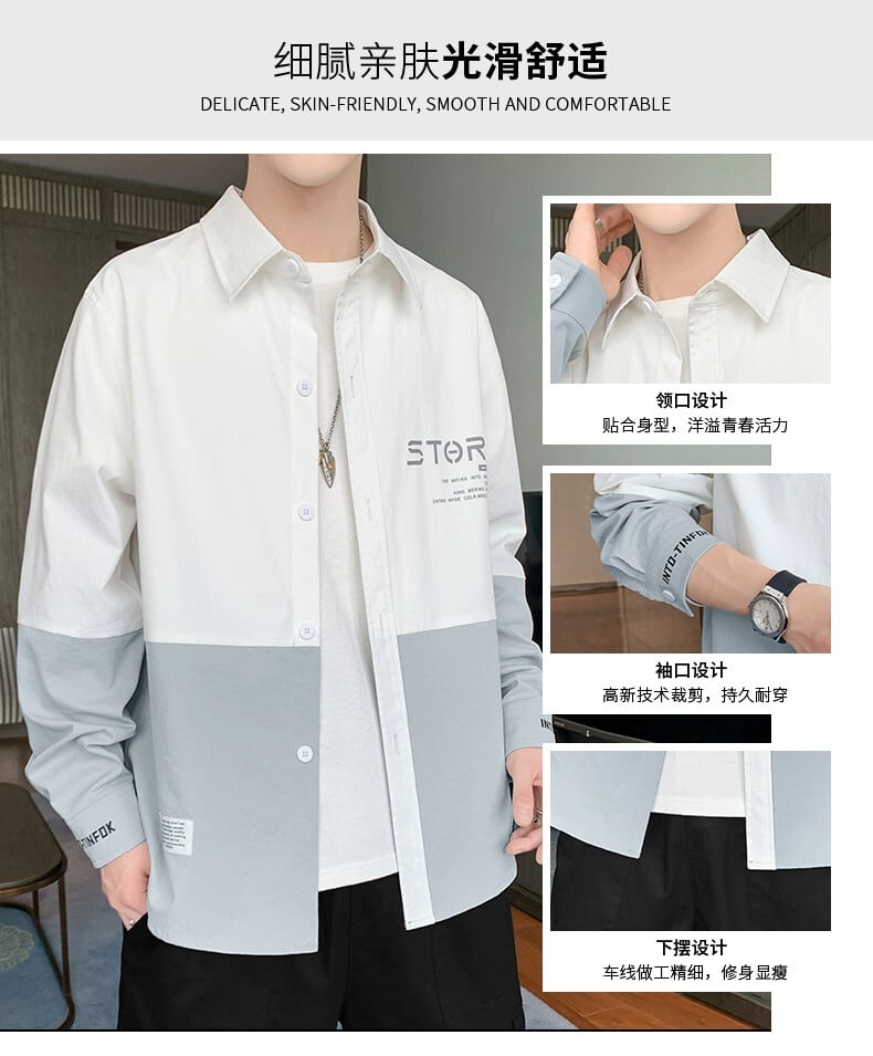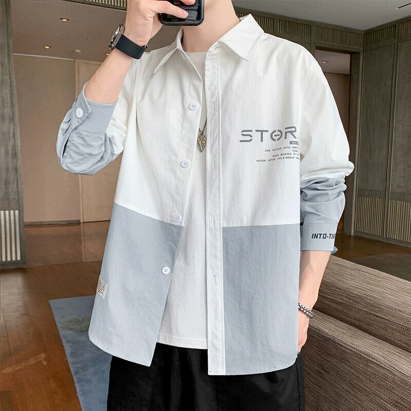 春と秋の長袖シャツメンズ 2023 新しい ese トレンディなブランド裏地服男の子ならず者ハンサムなポロ香港スタイルジャケット ロング スプリング 春物 オータム 秋物 undao50599423559